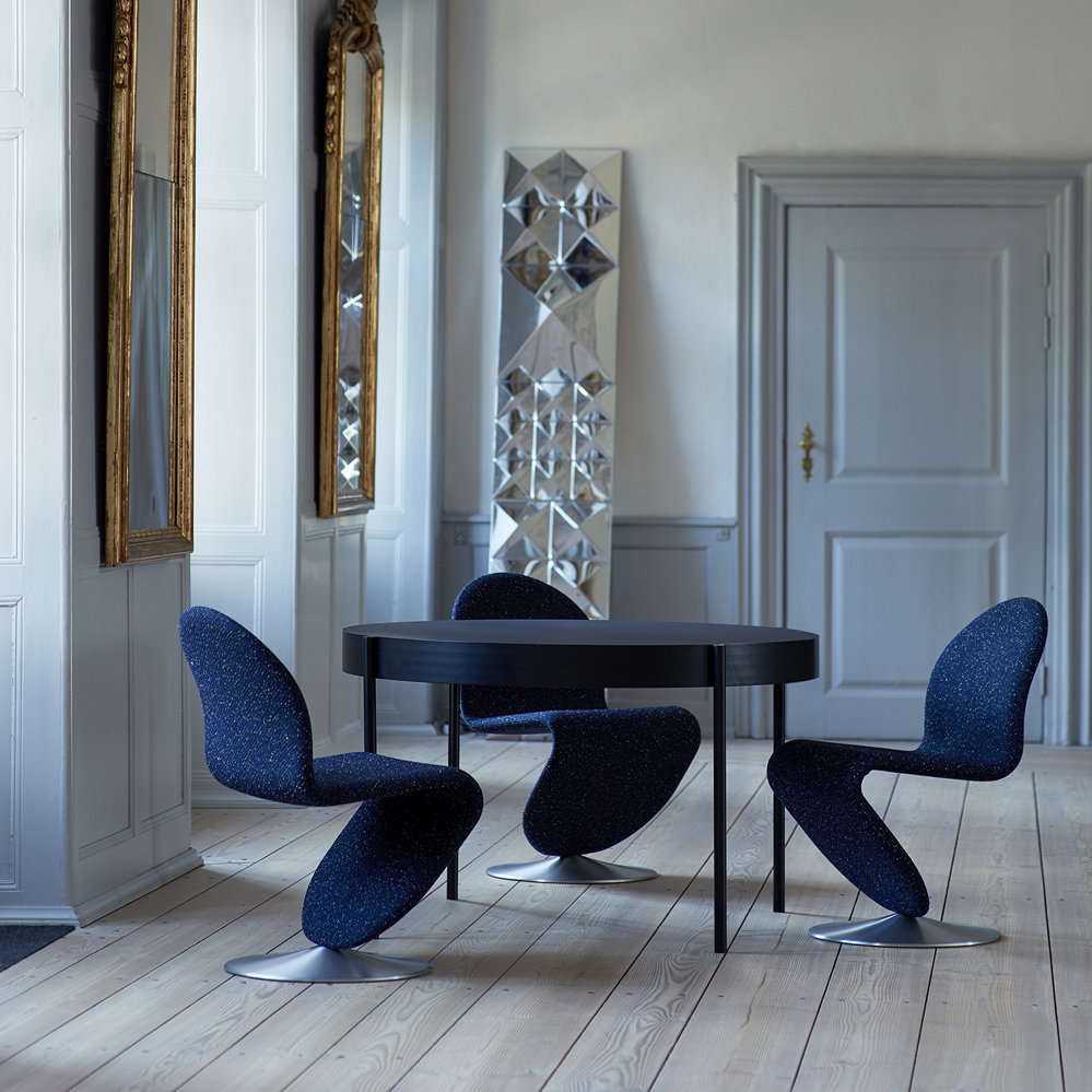Sicherlich inspiriert von dem Entwurf seines klassischen Panton Chair entwarf Verner Panton ab 1973 das 1-2-3 System, bestehend aus Freischwinger, Sessel und dazu passenden Tischen. Ursprünglich wurde das System in den 1970er Jahren von Fritz Hansen produziert, damals bestand die Produktfamilie aus ca. 10 Modellen.