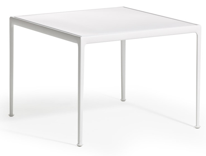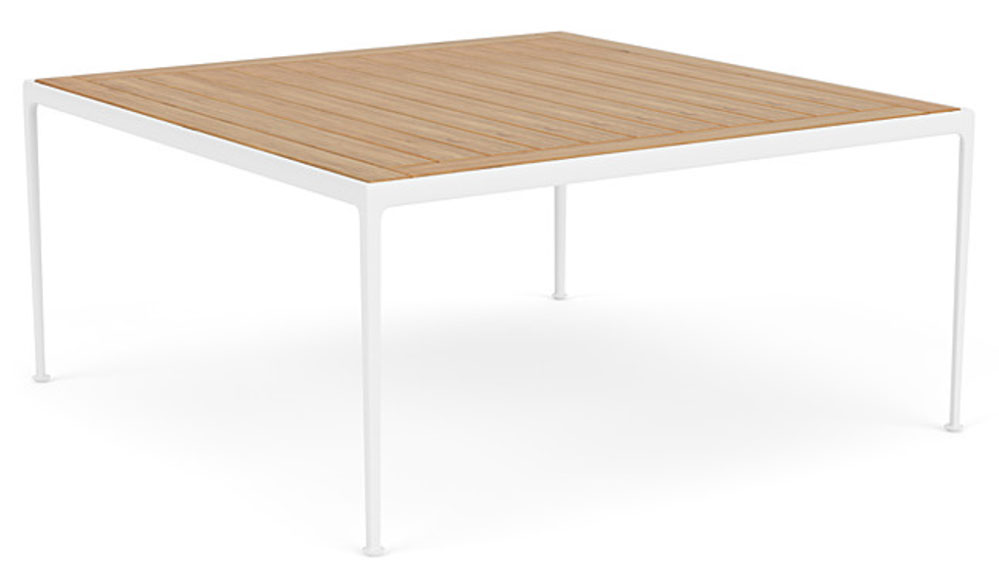 Der quadratische Esstisch 1966 zählt zu der 1966 Leisure Collection von Knoll International und ist - ebenso wie der Couchtosch der Serie - in den zwei Größen 71 x 71 cm und 96 x 96 cm lieferbar. Die Tischplatte ist wahlweise aus Teakholz oder aus Porzellan-Emaille für den langlebigen Außeneinsatz.