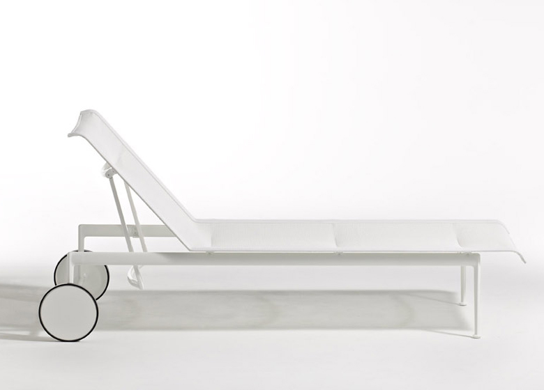 Die höhenverstellbare 1966 Gartenliege von Knoll mit den markanten Rad zur Verstellung der Position war gestalterisches Vorbild für zahlreiche, weitere Gartenliegen. Seit 2023 ist das Gestell auch in dunkelrot möglich, diese Farbe ist von alten Mies van der Rohe Freischwingern aus den 1930er Jahren abgeleitet.