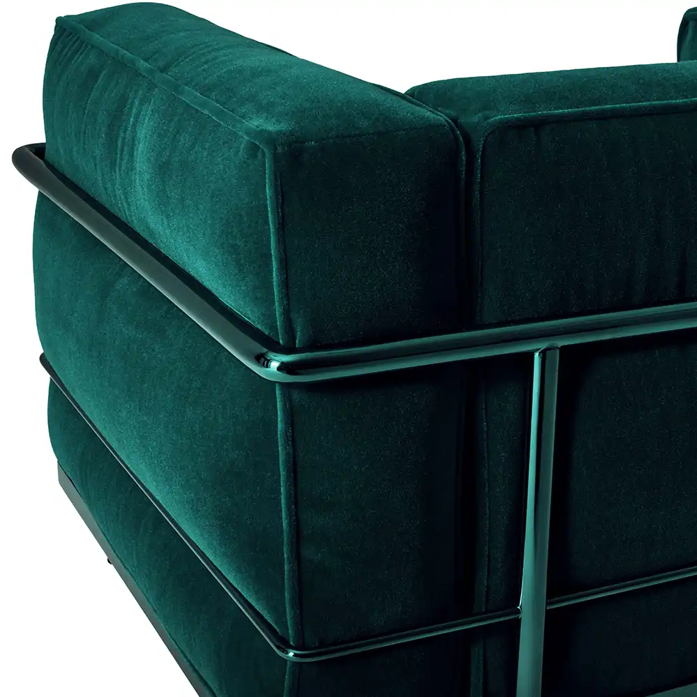 Diese limitierte Edition des LC3 Sessels erscheint zur Feier des 60jährigen Jubiläums der Kollektion bei Cassina. Denn im Jahr 1964 erwarb Cassina die Rechte an vier ikonischen Möbelstücken von Le Corbusier, Pierre Jeanneret und Charlotte Perriand, die ab 1965 dann in Serienproduktion gingen. Die Sonderedition umfasst drei neue Farben des Lirico Samtstoffes, die Ton in Ton mit dem farbig verchromtem Gestell abgestimmt sind.