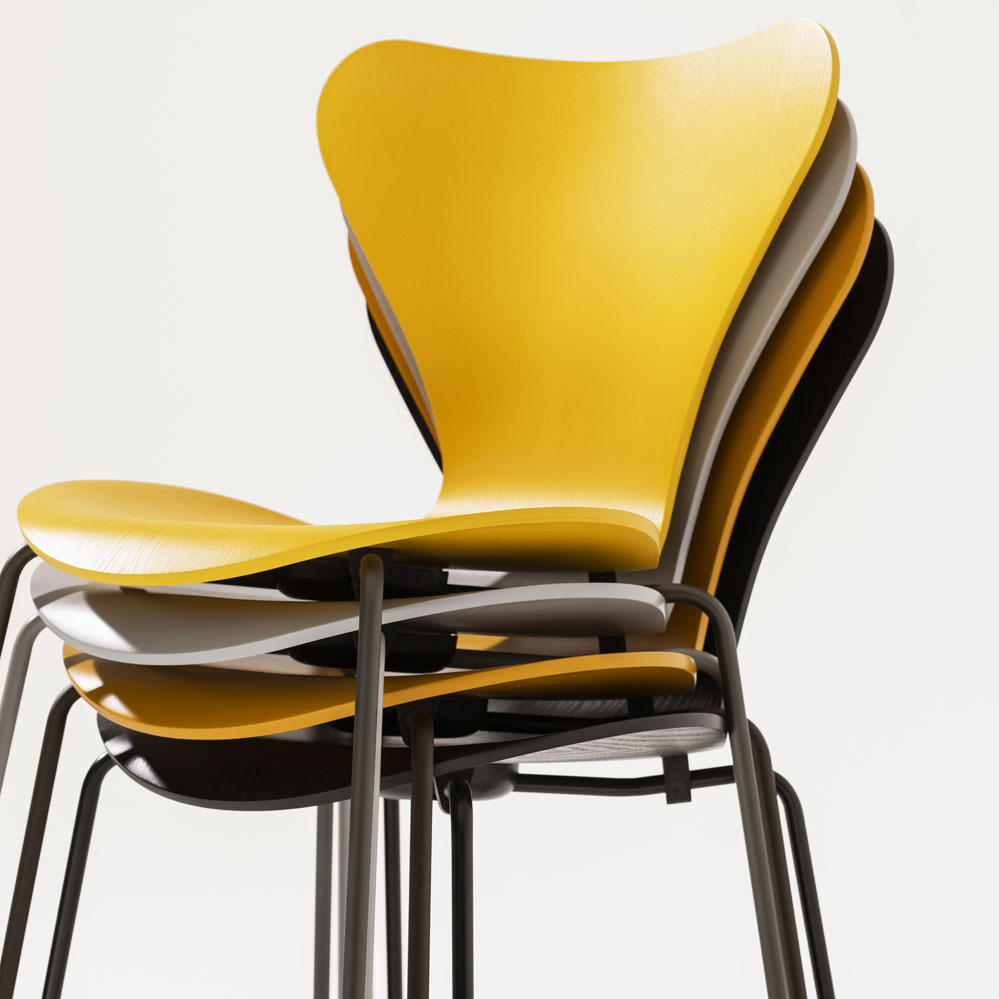 Fritz Hansen Serie 7: 3107 Stuhl / 3107 Chair von Arne Jacobsen: Mit farbiger Lasur