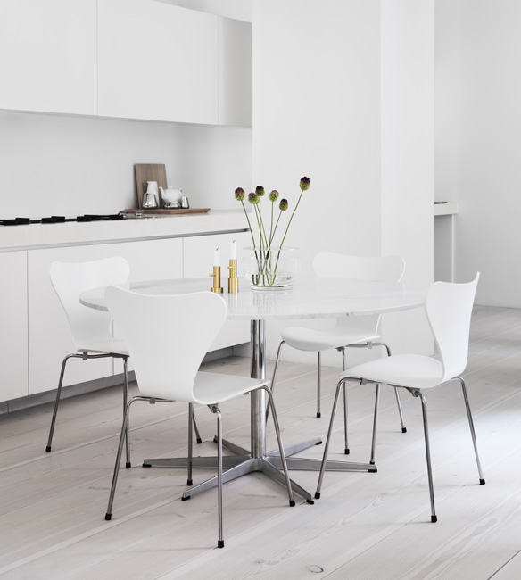 Der Stuhl 3107 zählt zur Serie 7 von Arne Jacobsen. Die Stuhlserie aus geformten Schichtholz gilt als eines der erfolgreichsten Möbel weltweit. Die Serie 7 von Fritz Hansen enthält dabei über 50 mögliche Varianten, vom vierbeinigen Stuhl für den Esstisch über verschiedene Bürostühle bis hin zum Kinderstuhl. Der Entwurf aus dem Jahr 1955 wurde dabei einer der weltweit erfolgreichsten Stühlen – über 7 Millionen Stühle wurden seit der Einführung von Fritz Hansen verkauft.