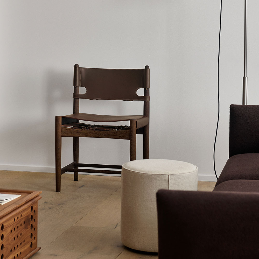 Basierend auf seinem Spanish Chair entwarf Børge Mogensen den gleichnamigen Stuhl, der 2018 von Fredericia wieder aufgelegt wurde. Erhältlich ist der Stuhl wahlweise mit oder ohne Armlehnen. Mit dem Entwurf gelang Mogensen die moderne Interpretation eines traditionellen Stuhltyps, auf den man in den alten islamischen Kulturgebieten stößt, die Inspiration fand er dazu auf einer Spanienreise im Jahr 1958.