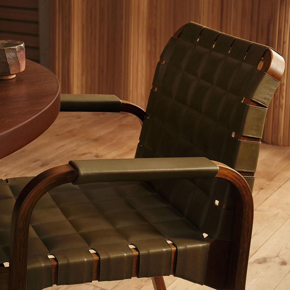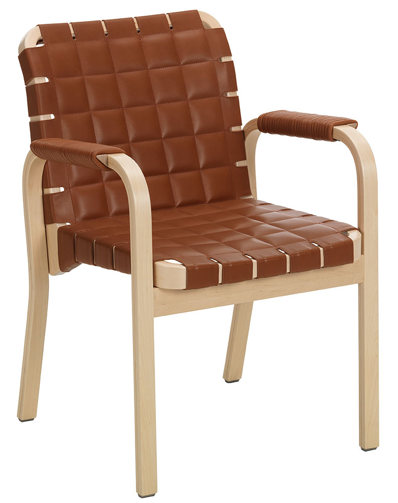 Artek Aalto Sessel 45 / Arm Chair 45 von Alvar Aalto: Varianten mit gesteppter Lederpolsterung