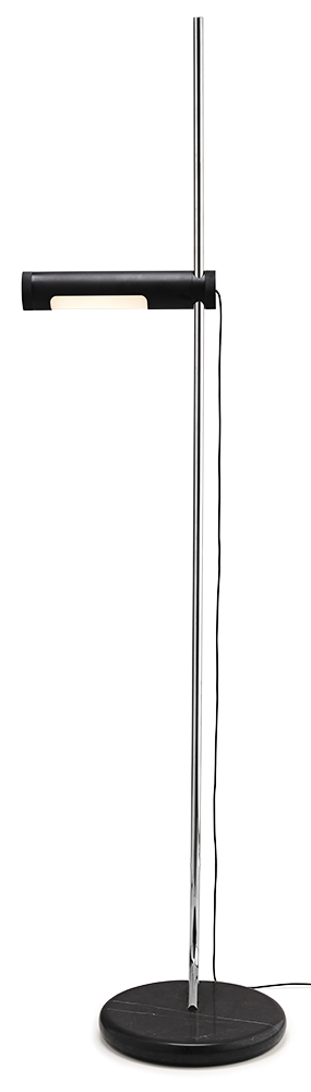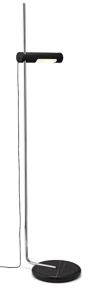 Die höhenverstellbare Alola Stehleuchte entwarf Angelo Mangiarotti 1970, die Höhe des Reflektor ist dabei beliebig justierbar,