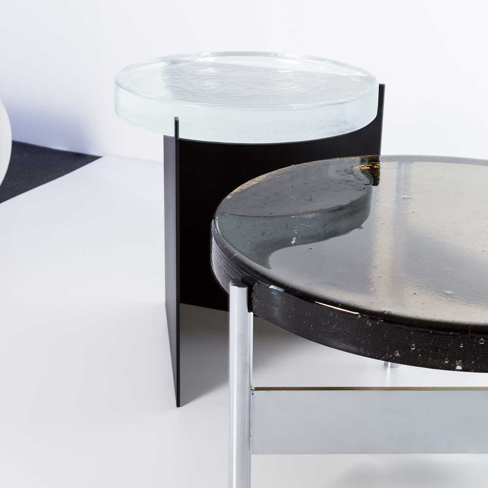 Die Alwa Table Serie wurde von Sebastian Herkner 2018 für Pulpo entworfen. Sie entstand aus Herkners Faszination für gegossenes Glas. Entsprechend sind die Tischplatten aus 5 cm starken, gegossenen Glasplatten, denen bei der Produktion erlaubt wird, Blasen zu werfen und sich unregelmäßig zu verteilen. Auf diese Weise ist jeder Tisch einzigartig. Die Tischplatten der Alwa-Tische sind in verschiedenen Glasfarben möglich, das Gestell ist wahlweise schwarz oder silberfarbig pulverbeschichtet.