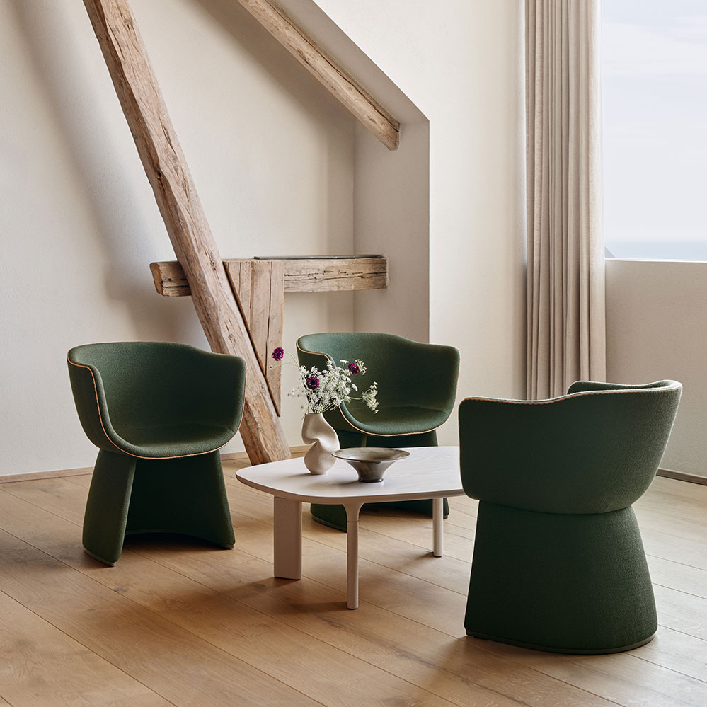 10 Jahre später: 2024 ergänzte Jaime Hayón seine Analog Esstische und einen passenden Beistelltisch und um einen Couchtisch. Ursprünglich 2014 entwarf der spanische Designer für Fritz Hansen die aus Massivholz und Furnier gefertigte Analog-Serie. Sie verbindet handwerkliches Können mit zeitgenössischem Design in einem eleganten und kreativen Ausdruck, der Langlebigkeit in Form und Stil garantiert. Die Tischplatte ist aus Furnier, das Massivholzgestell ist dazu passend in den Ausführungen in Esche oder Nussbaum erhältlich. Die Beine sind mit einem Trichter aus beschichtetem Aluminium an der Tischplatte befestigt.