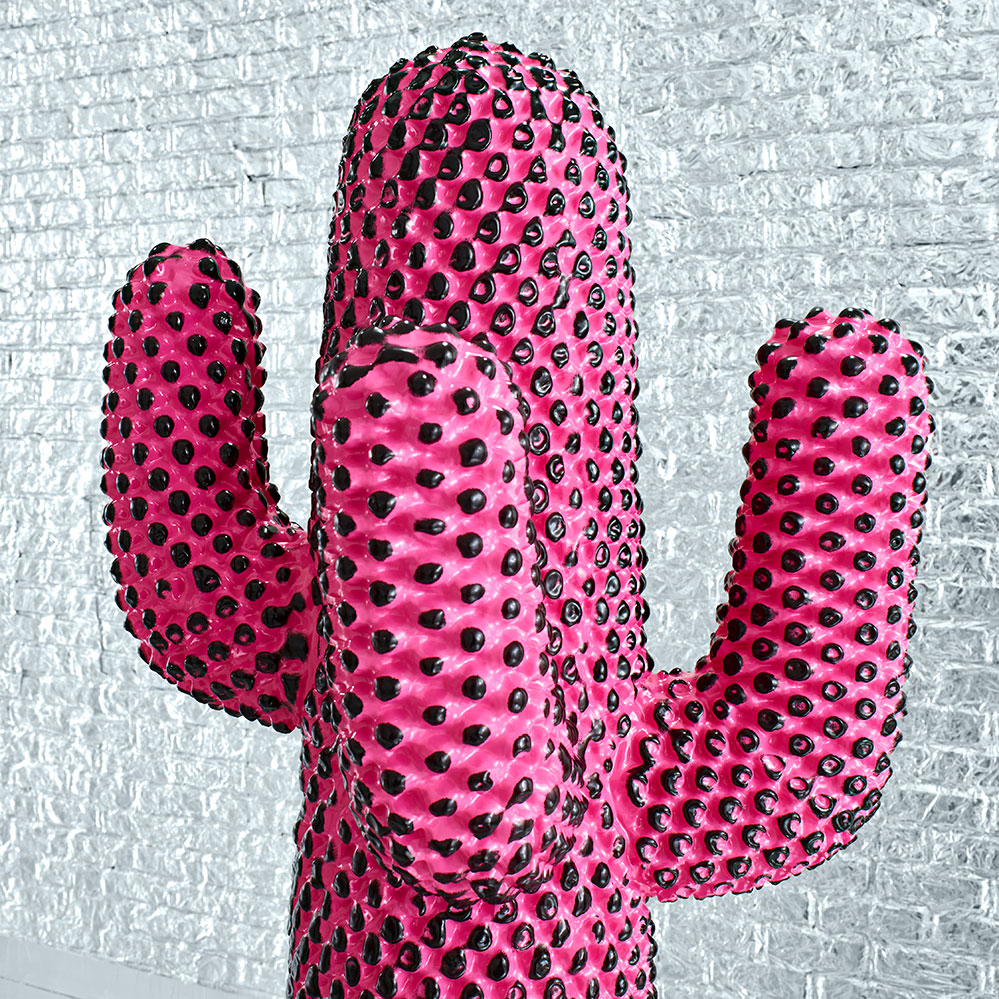 2025 legt Gufram zusammen mit der Andy Warhol Foundation eine zweite Edition des berühmten Cactus auf, die sich in drei neuen Farben (grün, orange und weiß) präsentiert. Wie auch bei der ersten Edition, die sehr schnell vergriffen war, sind die 2.165 Spitzen in Schwarz hervorgehoben.