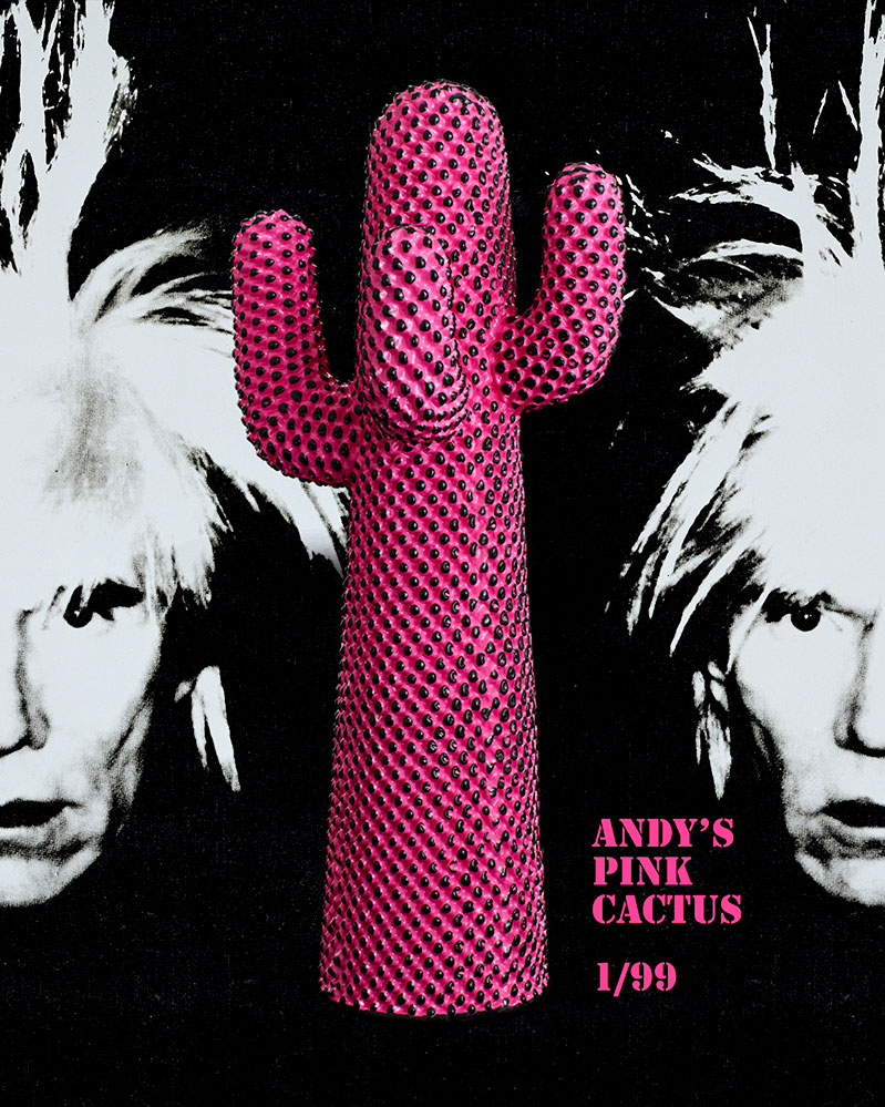 Andy's Green Cactus ist eine Hommage an den berühmten Künstler, das Projekt von Gufram entstand ursprünglich 2022 in enger Zusammenarbeit mit der Andy Warhol Foundation. Bei der Hommage treffen zwei Ikonen zusammen - auf der einen Seite das weltberühmte Pop Art-Genie auf der anderen Seite die Pop Design-Ikone aus Italien. Grundidee des Projekts war die Vorstellung, wie Andy Warhol den Gufram Cactus interpretiert hätte. Dazu erstellte Gufram eine digitale 3D-Version in den typischen Warhol-Farben, wobei die 2.165 Spitzen in Schwarz hervorgehoben wurden, analog zu den Siebdrucken des Künstlers.