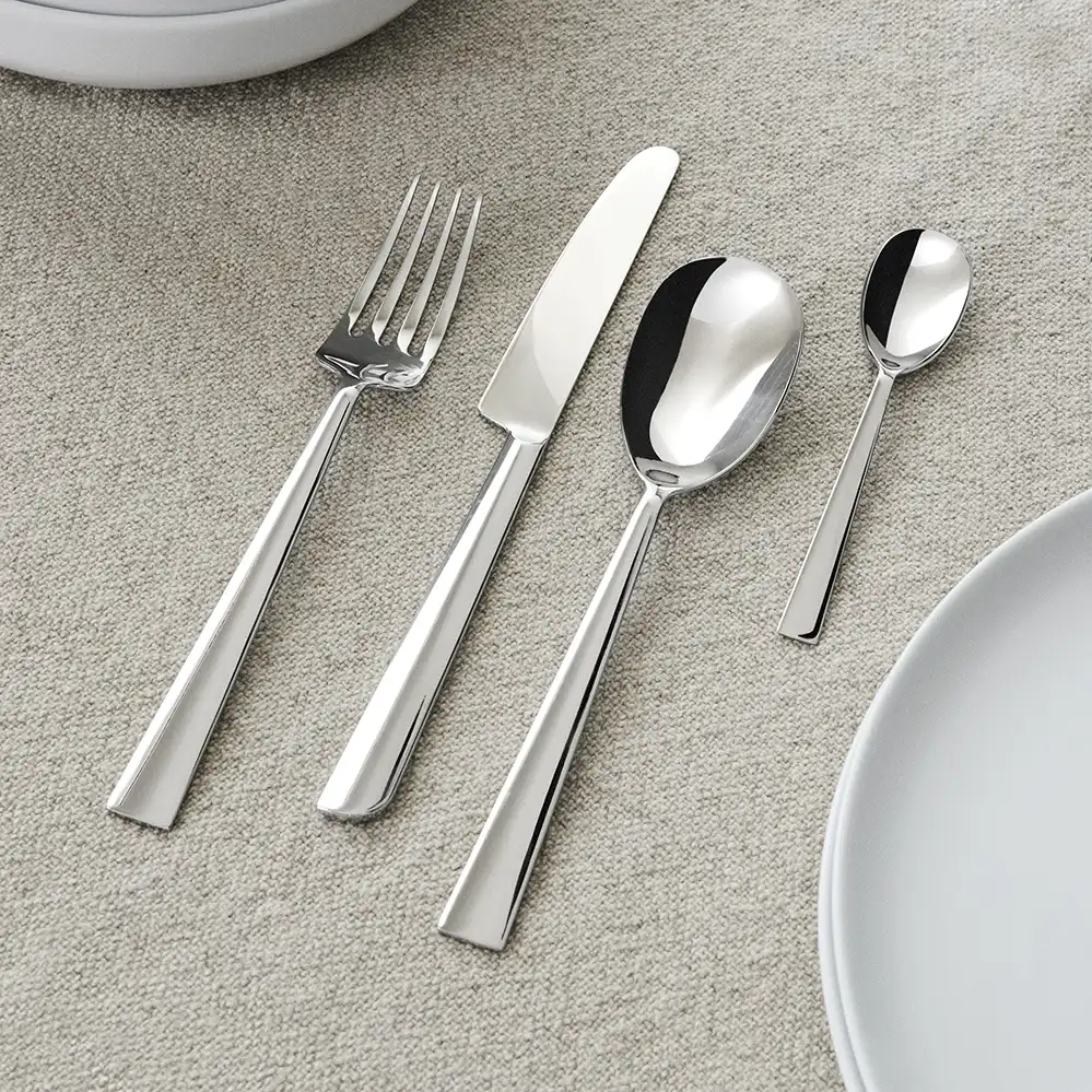 Das Asta Besteck wurde von Alessi 2025 nach dem Entwurf von Alessandro Mendini aufgelegt. Die 24teilige Besteckgarnitur umfasst Esslöffel, Gabel, Messer sowie Kaffeelöffel für jeweils sechs Personen, die Lieferung erfolgt in einer Alessi Geschenkverpackung.