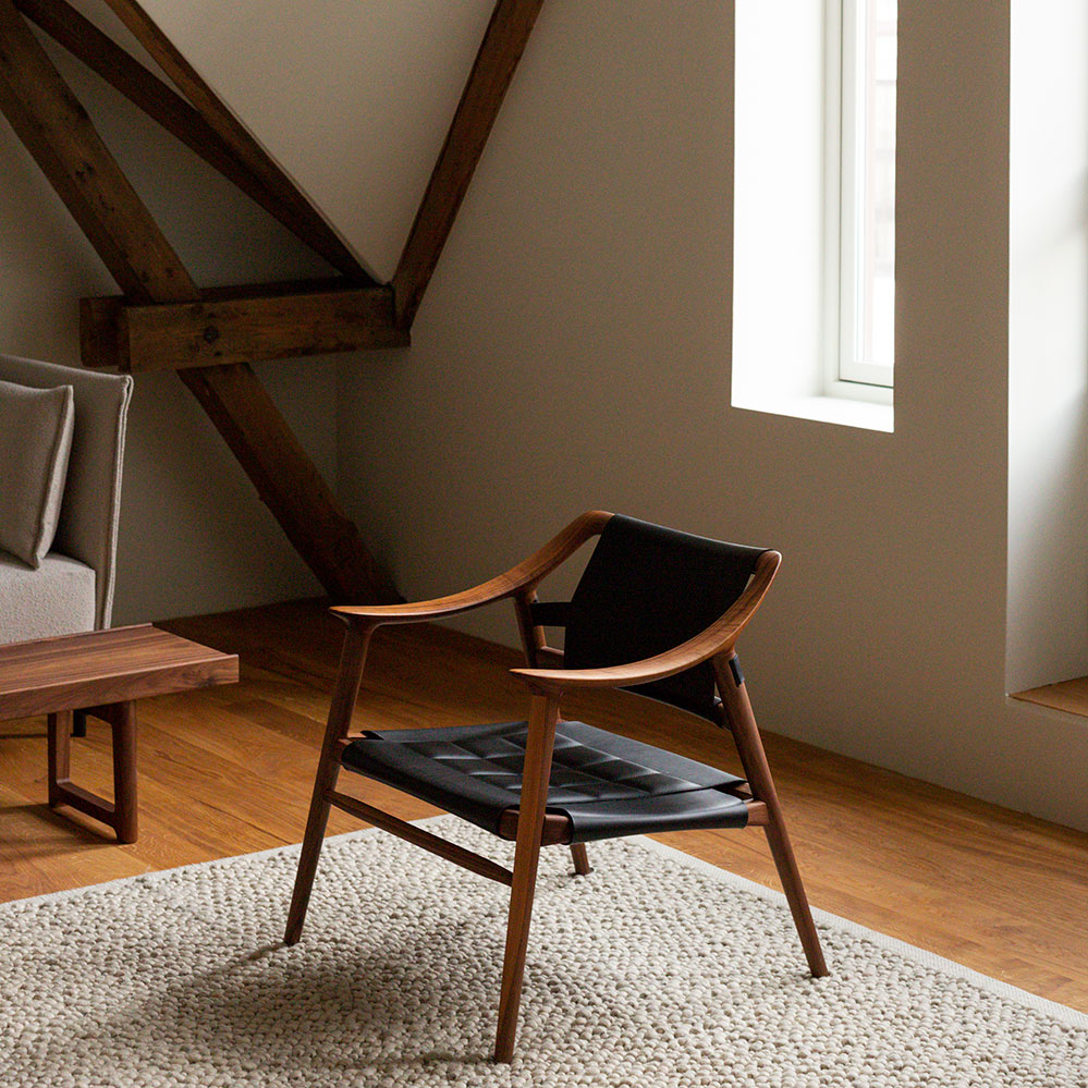 Der Bambi Lounge Chair wurde 1955 von dem norwegischen Designbüro Rastad & Relling Tegnekontor mit Sitz in Oslo entworfen, der eigentliche Entwurf wird heute dem Mitarbeiter Sigurd Resell zugeschrieben. Früher produziert von Gustav Bahus Eftf., wurde der skandinavische Klassiker ab 2021 von Fjordfiesta in zwei Varianten aufgelegt: Der Bambi Lounge Chair 56/2 verfügt über eine Lederbespannung, das Modell Bambi Lounge Chair 56/1 über eine Bespannung mit Polyesterkordeln.