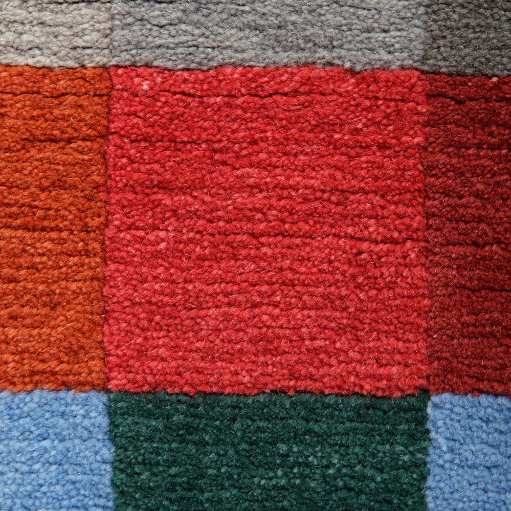 Die farbenfrohe Komposition des Bauhaus Teppich Nr. 1 von Gertrud Arndt ist ein Entwurf aus dem Jahr 1924 und wurde 2019 im Rahmen des Bauhaus-Jubiläums von Designercarpets erstmalig aufgelegt. In den 1920er Jahren wurde der Teppich mit seinen zahlreichen Quadraten nur einmalig als Knüpfteppich hergestellt.