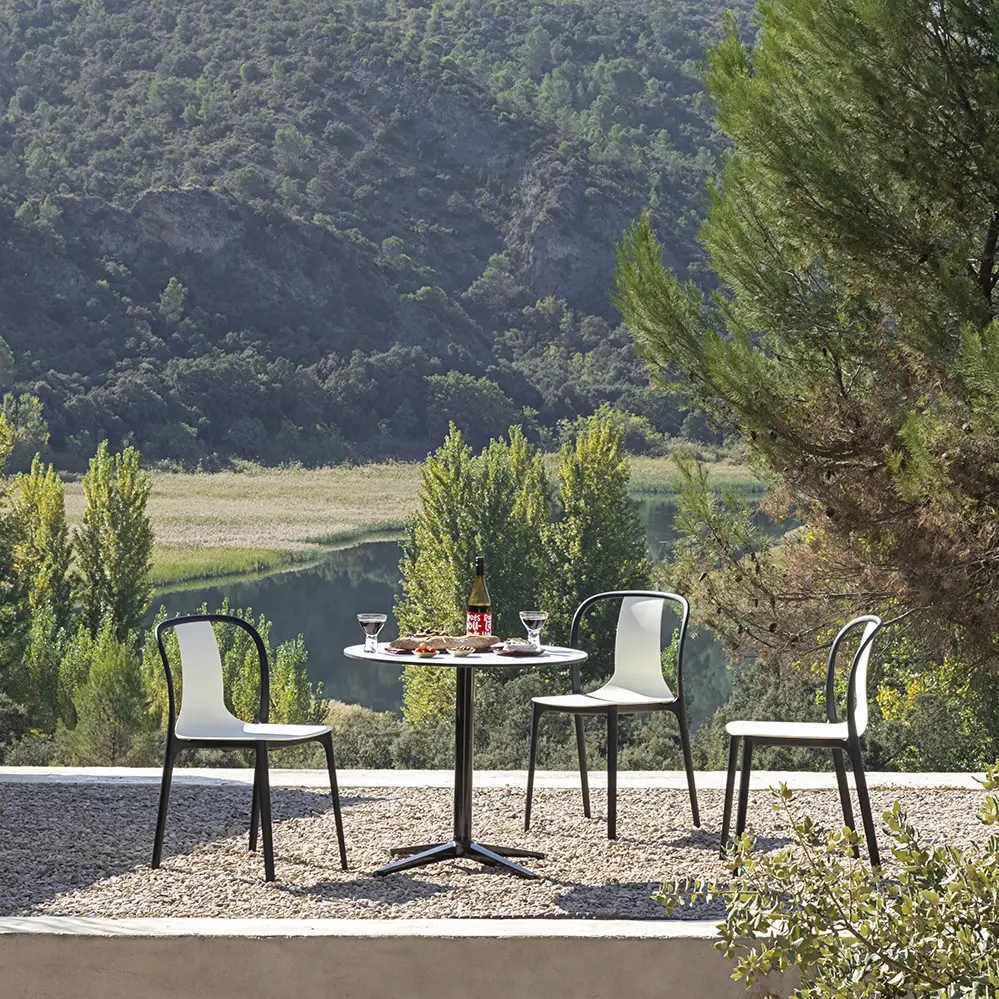 Der runde Belleville Bistro Table von Ronan und Erwan Bouroullec ist als kleiner Tisch für den Garten oder die Terrasse gedacht. Optional ist der Tisch noch mit einer Eiche-Furniertischplatte für den Indoorbereich möglich (siehe letzte Abbildung), wir freuen uns auf Ihre Anfrage.