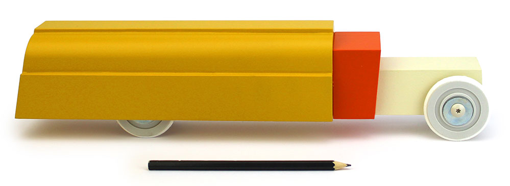 Der 40 cm lange Tankwagen aus Buchenholz ist ein Entwurf von Floris Hovers, gedacht sind diese großen LKW-Modelle als Editiion für Designfans oder Sammler. Jeder LKW ist von unten nummeriert und von Floris Hovers signiert.