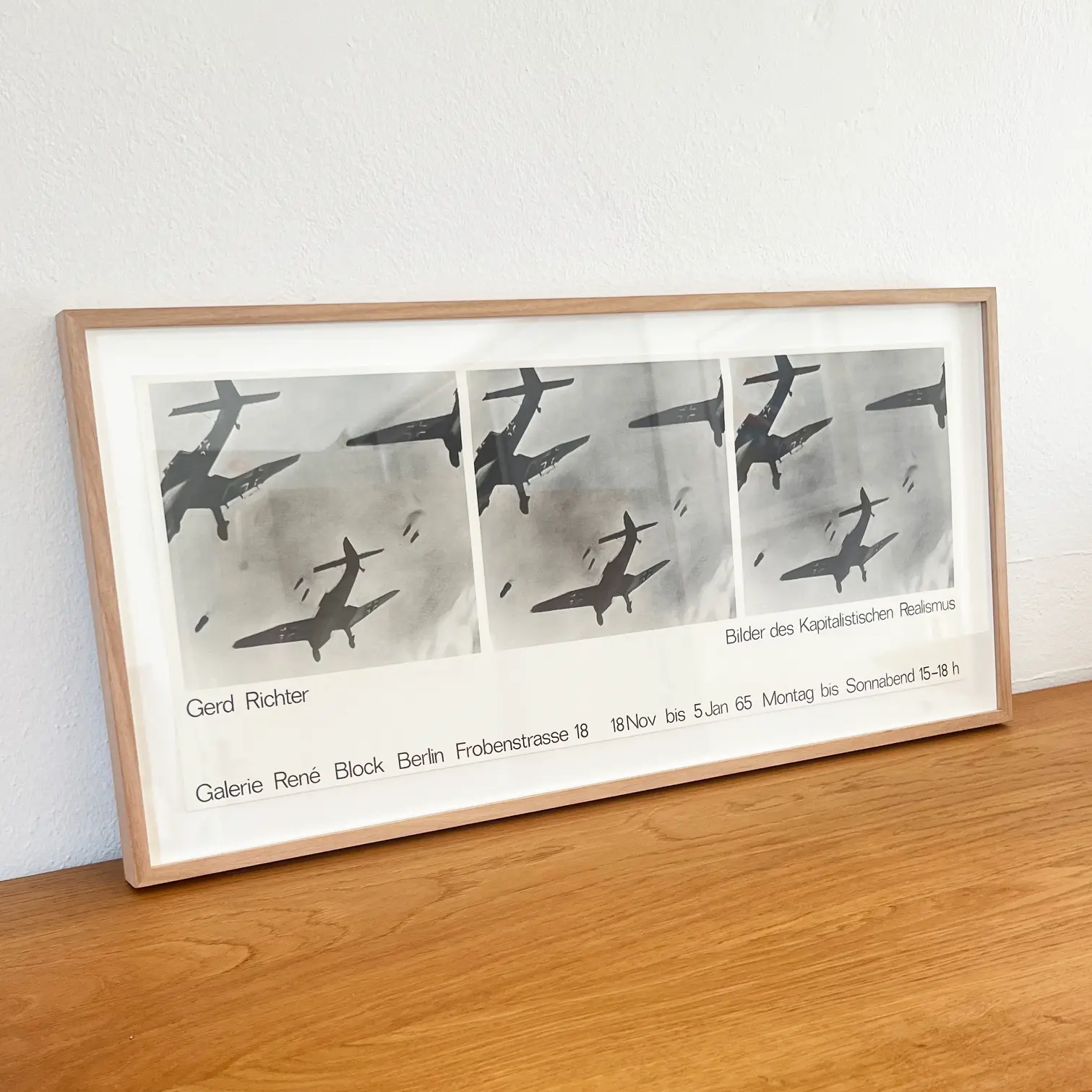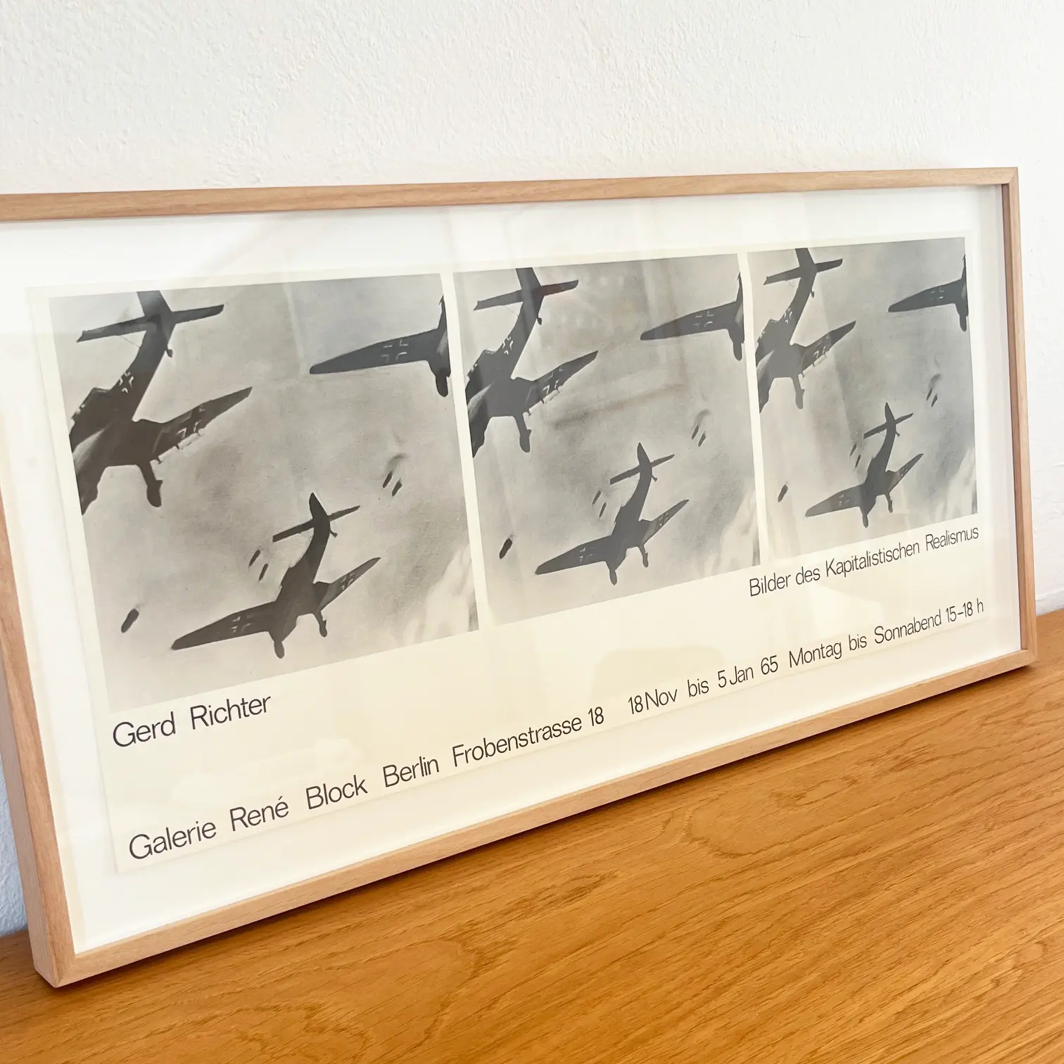 Das Plakat zur Ausstellung ”Bilder des kapitalistischen Realismus” in der Galerie René Block in Berlin ist wohl das erstes Ausstellungsplakat von GErhard Richter überhaupt und entstand im Jahr 1964. Das Motiv des Plakats zeigt drei Stukas (Sturzkampfbomber), das Original befindet sich in der Pinakothek der Moderne, München.