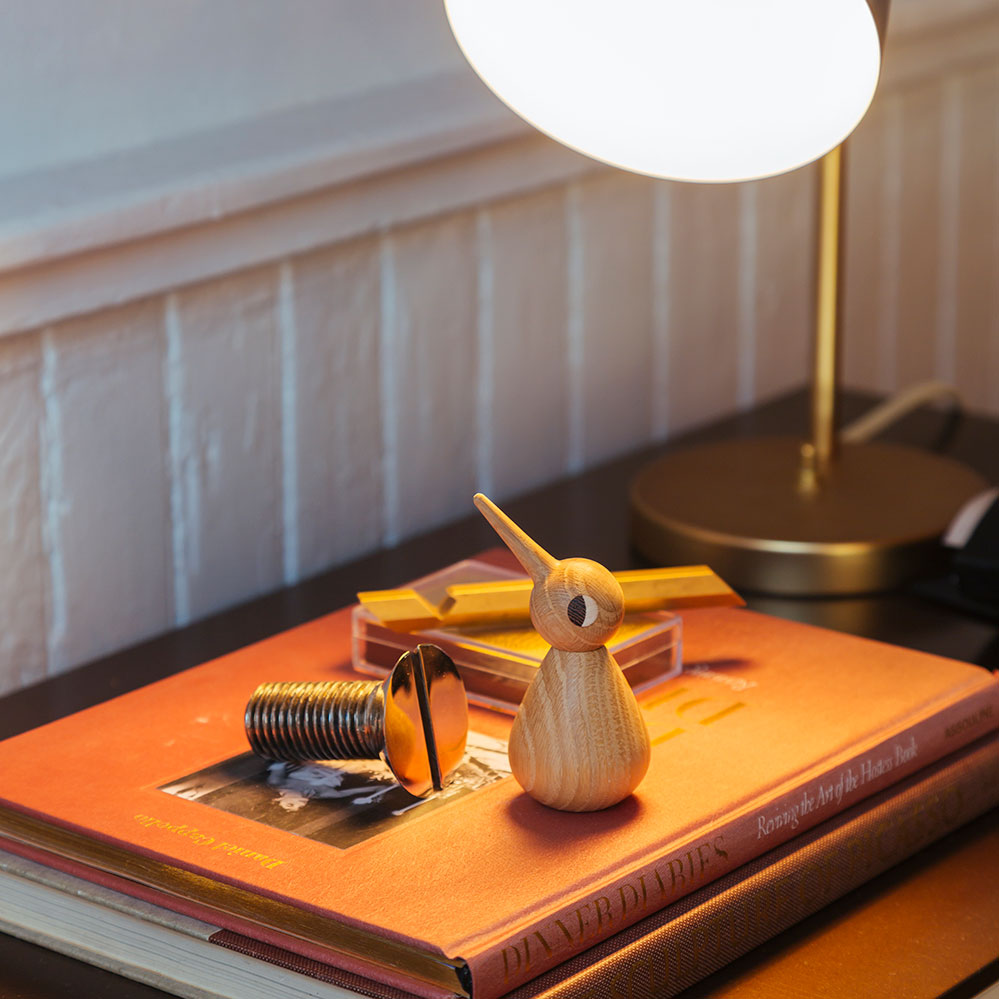 1959 entwarf der dänische Designer und Architekt Kristian Vedel die kleinen Bird Vogelfiguren. Jede Vogelskulptur besteht dabei aus zwei einzelnen Teilen – Kopf und Körper. Dabei lässt sich der Kopf wahlweise auf beiden Seiten des Körpers platzieren, so erhält dann der Vogel ein eher weibliches oder männliches Aussehen. Auch die Position des Kopfes kann individuell beliebig verstellt werden, so wirkt der Bird dann z. B. glücklich, traurig oder neugierig.