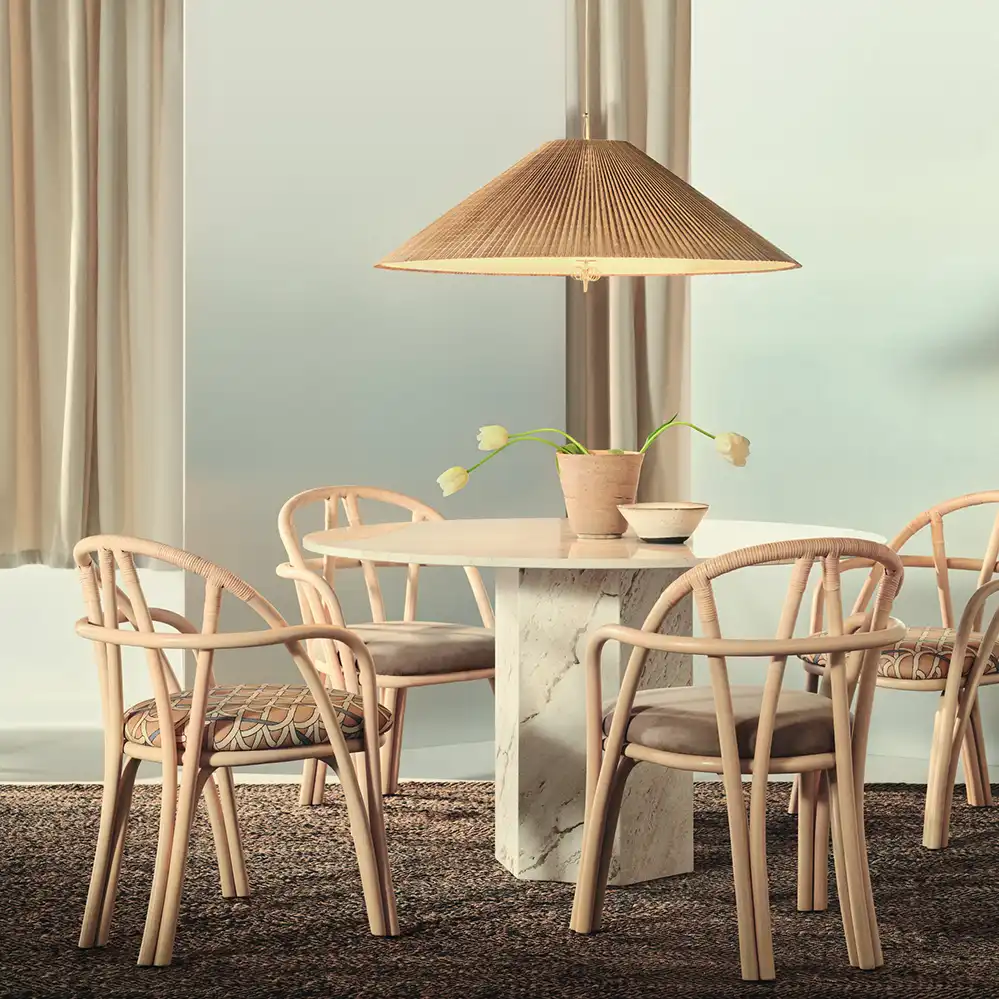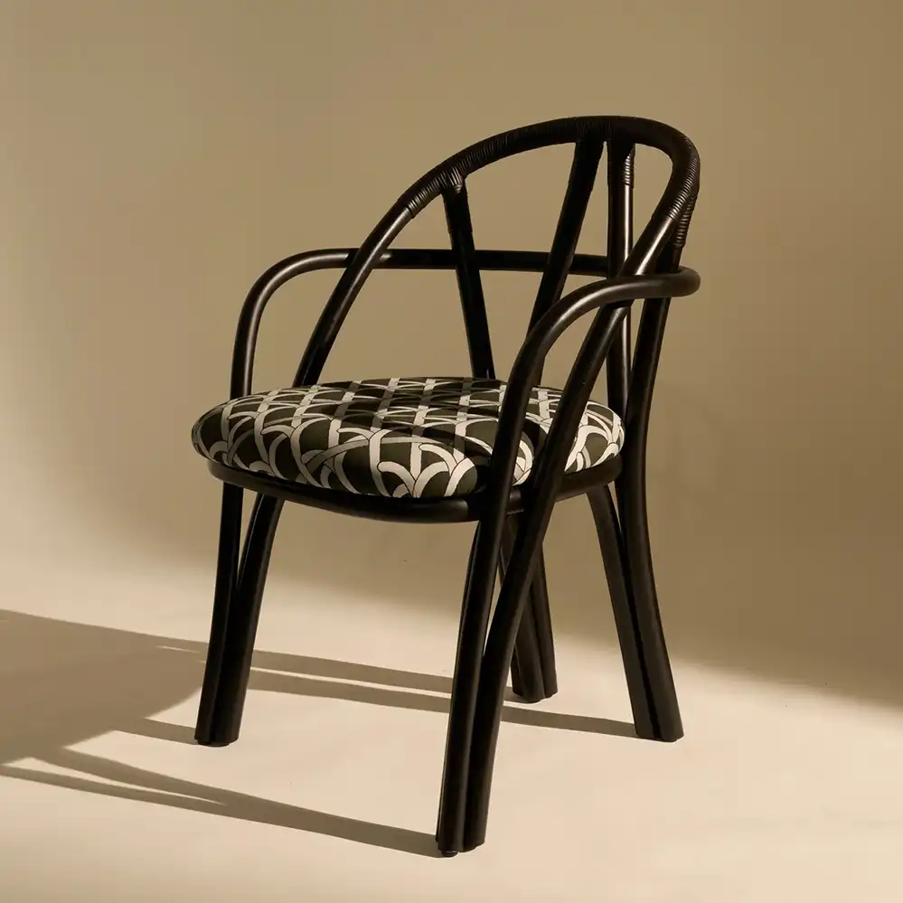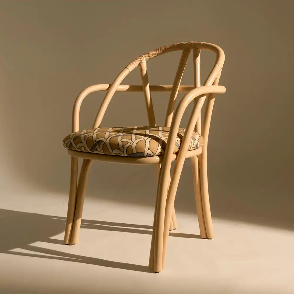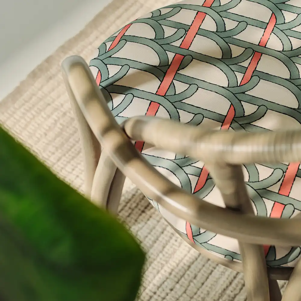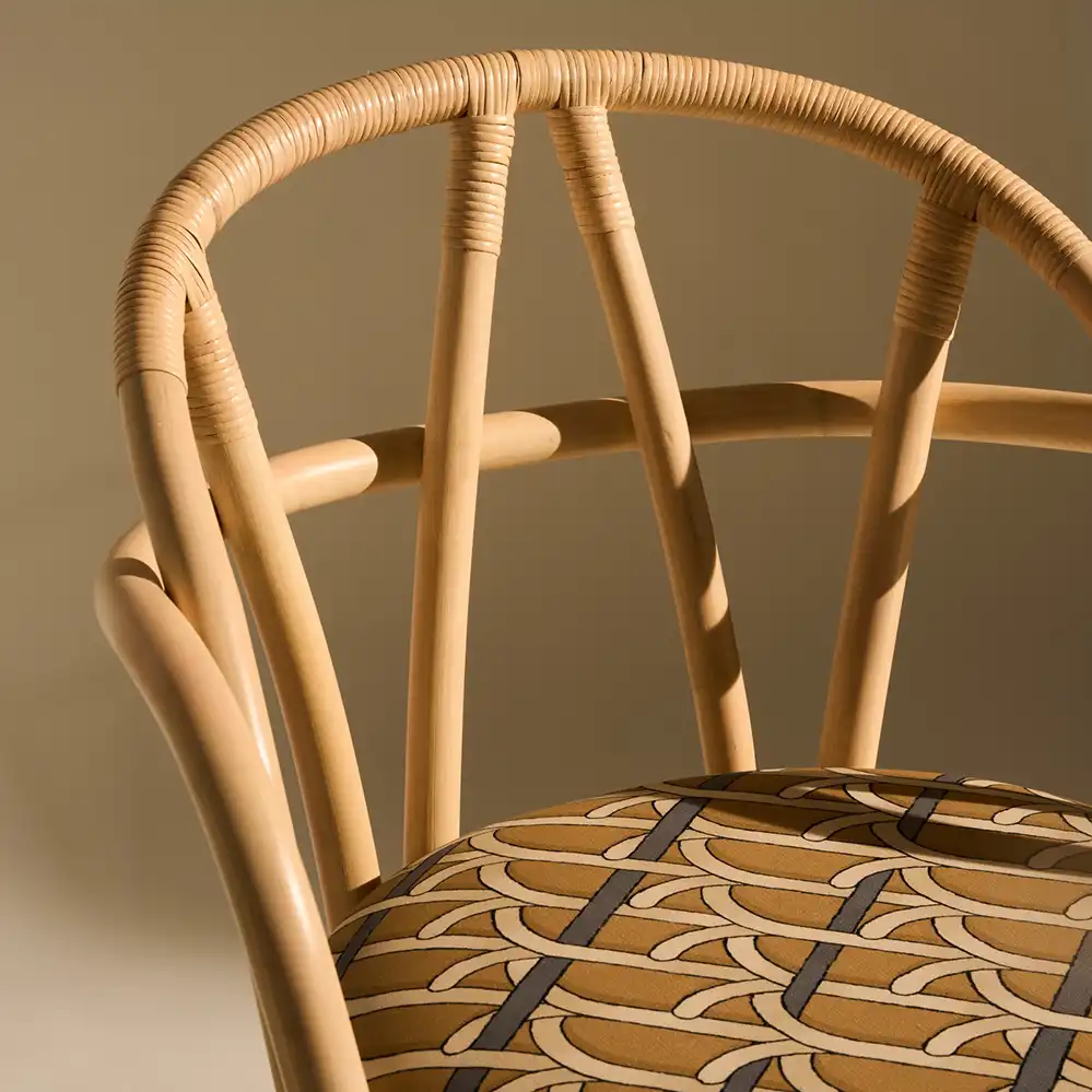 Mit dem Bistra Dining Chair interpretiert das Mailänder Designstudio AMDL Circle unter der Leitung von Michele De Lucchi die klassische Bistrostuhl-Ästhetik des frühen 20. Jahrhunderts neu. In Zusammenarbeit mit GUBI entstand ein Entwurf, der Handwerkskunst, Materialforschung und zeitlose Gestaltung vereint. Dampfgebogene Rattanelemente, inspiriert von organischem Wachstum und architektonischer Präzision, formen Rückenlehne, Armlehnen und Beine. Der passende Bezug, das eigens für die Kollektion entwickelte Reales Pattern, greift diese Formsprache grafisch auf. Inspiriert von einem Deckenfresko Leonardo da Vincis im Castello Sforzesco, verbindet das handgezeichnete Linienmuster Struktur und Polsterung zu einer gestalterischen Einheit.