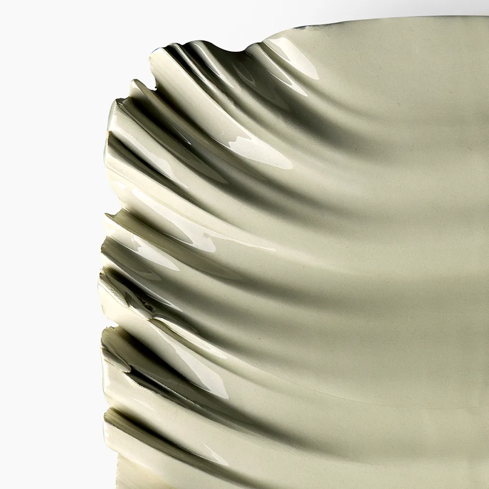 Im Rahmen der Edition Riedizioni Archivio Storico legt Bitossi ausgewählte Keramikobjekte nach Entwürfen von Aldo Londi aus den 1950er bis 70er-Jahren wieder auf, in dieser Zeit fungierte Londi als künstlerischer Leiter des Unternehmens. Zu seinen Entwürfen zählt auch diese flache Schale. Bei diesem Entwurf von 1985 werden die Einschnitte von Hand mit einem Nylonfaden vorgenommen. Die Neuauflage ist auf 99 Exemplare limitiert.