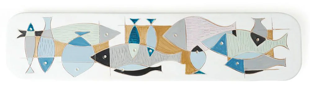 Im Rahmen der Edition Riedizioni Archivio Storico legt Bitossi ausgewählte Keramikobjekte nach Entwürfen von Aldo Londi aus den 1950er bis 70er-Jahren wieder auf, in dieser Zeit fungierte Londi als künstlerischer Leiter des Unternehmens. Zu seinen Entwürfen zählt auch diese Wandkeramik mit den Fischmotiven. Die Neuauflage ist auf 199 Exemplare limitiert.