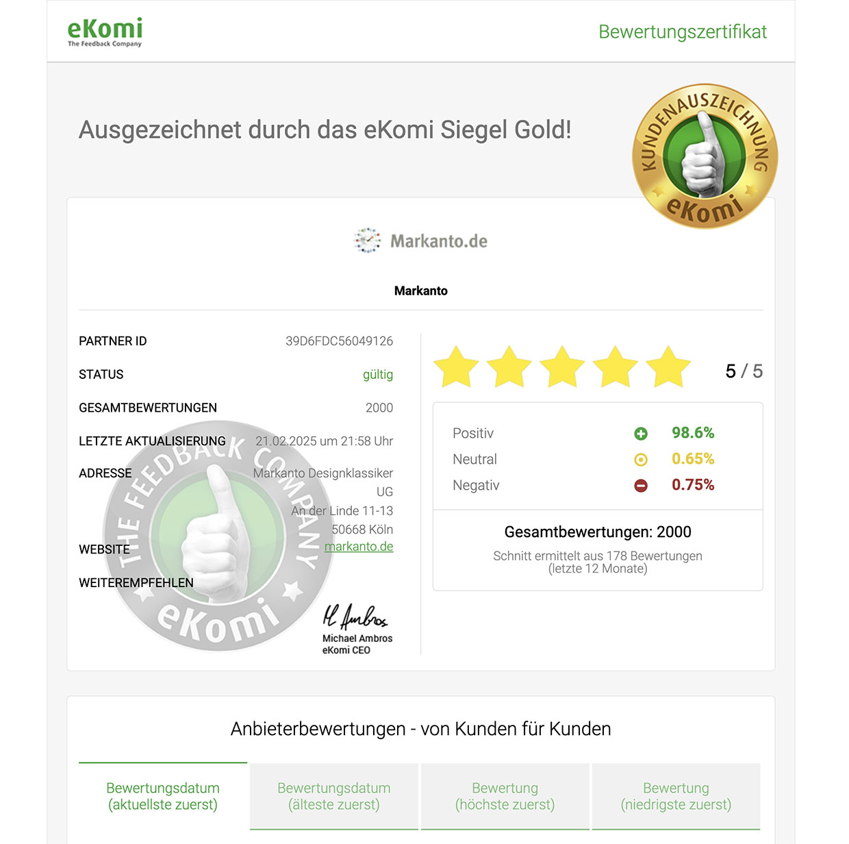 Die Woche fängt gut an: Seit heute, dem 24. Februar 2025, haben wir genau 2.000 Bewertungen bei dem Bewertungsportal eKomi. Wir bedanken uns dafür bei all unseren Kunden!