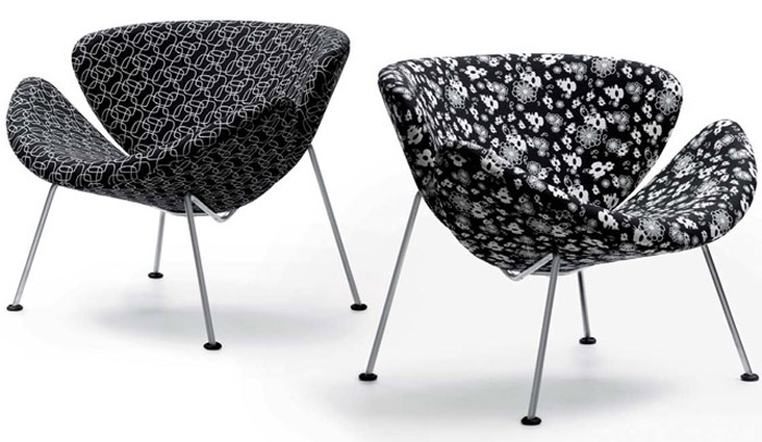 1958 startete seine enge Zusammenarbeit mit dem niederländischen Hersteller Artifort. Heraus kamen Designklassiker der 1960er und 70er Jahre wie der Ribbon Chair, der Butterfly oder der Orange Slice. Zum 50jährigen Jubiläum hat Artifort nun eine Editionsvariante des Orange Slices in zwei Farbkombinationen aufgelegt.