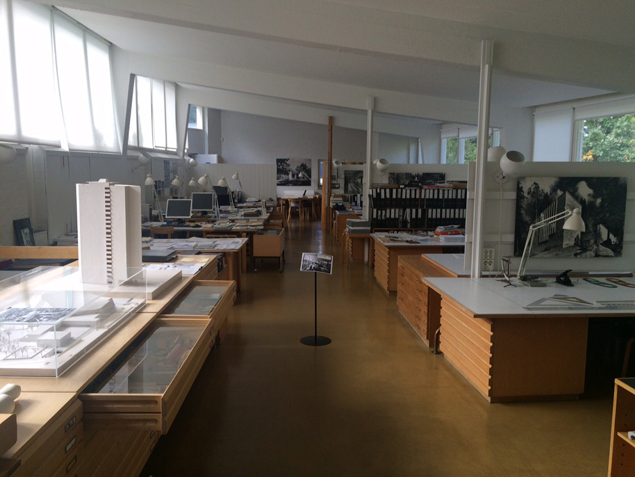 Atelierraum von Alvar Aalto mit dem Modell des Hochhauses Neue Fahr in Bremen