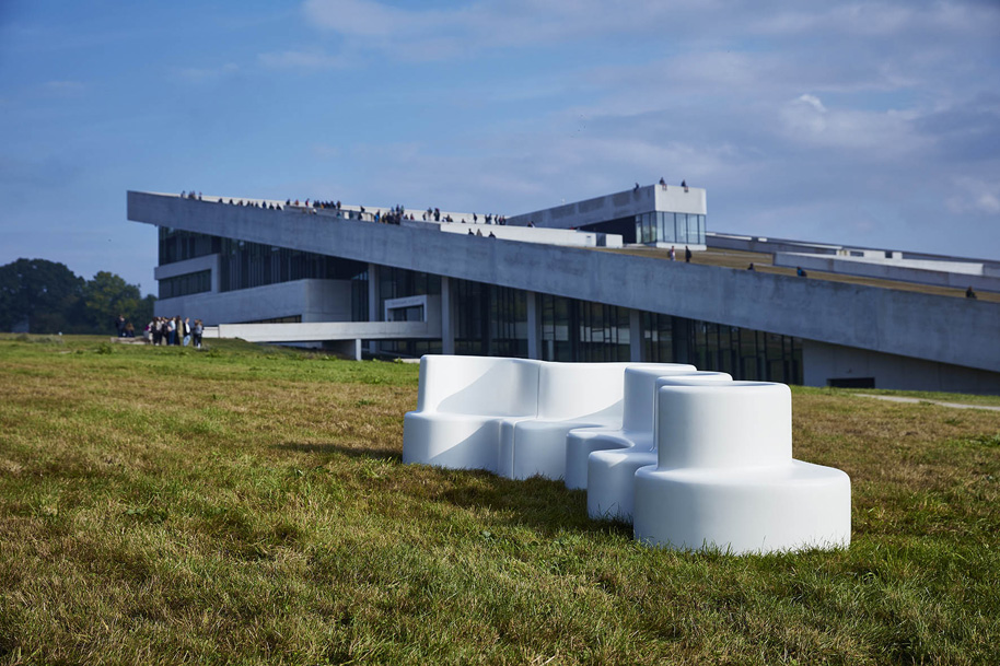 Neu von Verpan ist die Outdoor-Variante des modularen Sofasystems Cloverleaf. Das Konzept von Verner Panton stammt dabei bereits aus dem Jahr 1970. Einer der ersten Einsatzorte ist das prähistorische Moesgård Museum im dänischen Aarhus. Dort wurden die Außenbereiche des spektakulären Museumsneubaus nach einem Entwurf von Henning Larsen Architects mit dem Sofa ausgestattet.