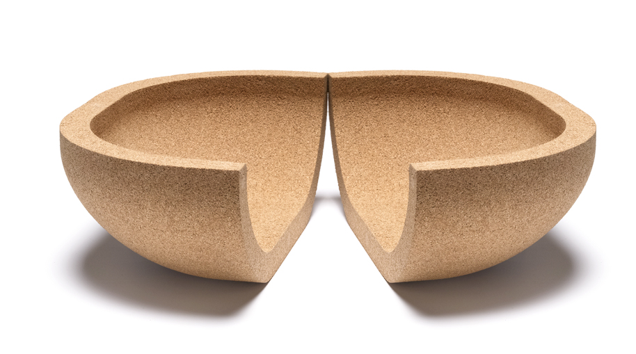 Dabei ist die Verbindung der beiden Elemente sehr stabil; die Korkschale kann wahlweise horizontal oder vertikal genutzt werden. Entstanden ist das ungewöhnliche Konzept von Nendo im Rahmen der Materia Kollektion von Amorim.
