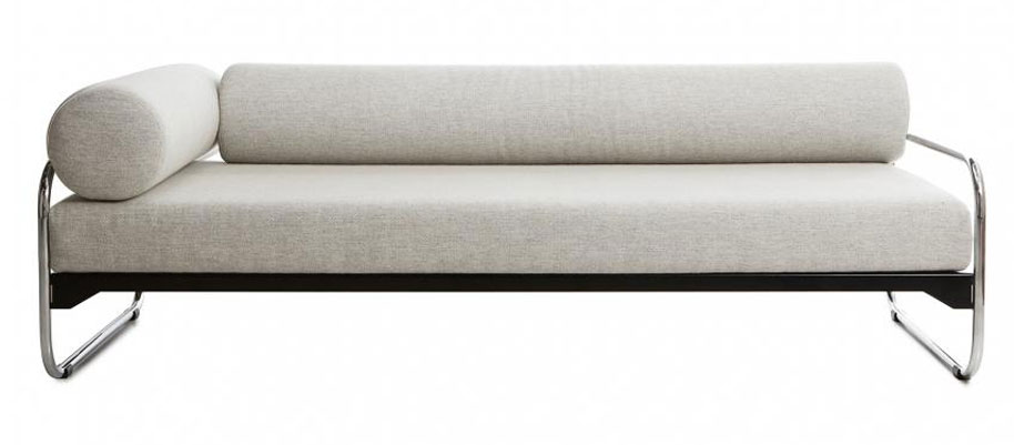 Die klassisch eleganten Betten bilden mit ihren aus verchromtem Stahlrohr gefertigten Kopf- und Fußenden Kufen aus, auf denen sie mühelos aus den Schranknischen gleiten konnten. In seiner ursprünglichen Breite mit einer Liegefläche von 200 x 90 cm eignet sich das Bett, heute von Embru hergestellt, je nach Ausstattung mit entsprechenden Polstern und Kissen auch als Chaiselongue.