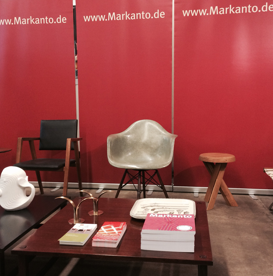 Gezeigt wurden unter anderem aus dem Markanto Vintage-Bereich die beiden Couchtische von Gianfranco Frattini (Cassina), ein seltener drehbarer Eames Plastic Arm Chair (aus einer ganz frühen Produktion) oder ein Prototyp von Franco Albini. Die beiden Messing-Kerzenständer auf den Tischen waren eine Neuerwerbung – der Entwurf von 1939 stammt von dem schwedischen Designer Ivan Alenius-Bjöck.