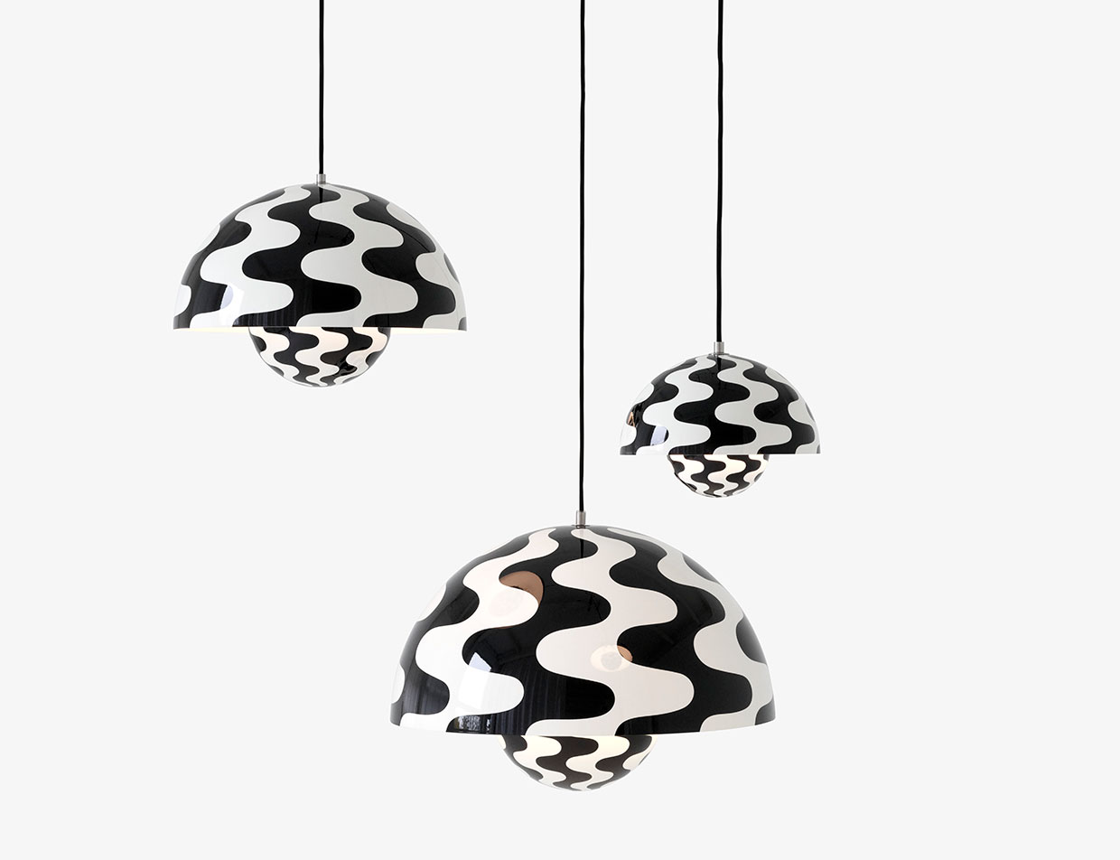 Seit Februar 2023 präsentieren sich die Leuchten der Flowerpot-Serie in neuen bunten Farben. Zusätzlich hat der Hersteller andtradition den dänischen Lichtklassiker in der berühmten Version mit dem psychedelischen Muster von Verner Panton aufgelegt. Der Entwurf selbst stammt aus dem Jahr 1968, die Flowerpot wurde schell zu einer der beliebtesten Leuchten Dänemarks. Denn nicht nur der Entwurf in Form einer Kugel (der Durchmesser der oberen Schale doppelt so groß wie der der unteren Schale) traf den Nerv der damaligen Zeit, auch der damalige günstige Verkaufspreis des Leuchtenherstellers Louis Poulsen trug zur Verbreitung bei.
