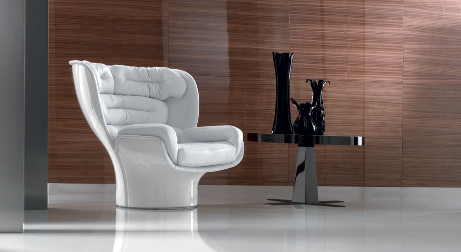 Vor über 50 Jahren entwarf Joe Colombo den Drehsessel Elda, der ursprünglich von Comfort, später von Longhi, produziert wurde. Elda war der erste Sessel, der über einen freitragenden Kunststoffrahmen verfügte.