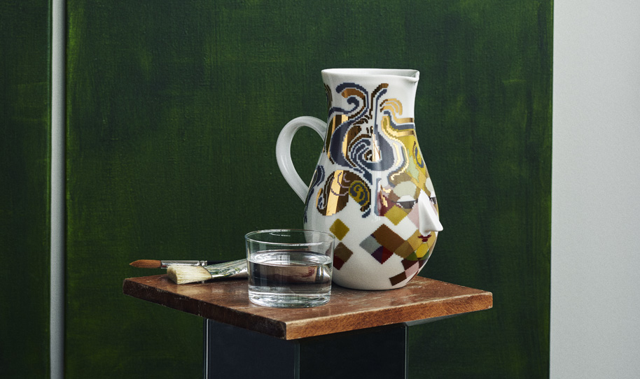 Neu bei Markanto ist die Gobelin Kollektion von Bjørn Wiinblad. Sie besteht aus einer Schale, einer Servierplatte und einer Kanne, die separat erhältlich sind. Alle drei Objekte werden geziert von Motiven, die an Bjørn Wiinblads Entwürfe für Wandteppiche angelehnt sind.