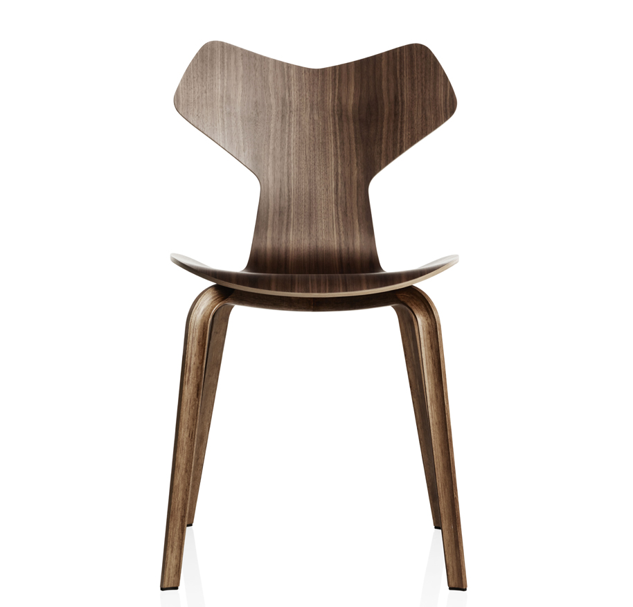 Die Neuauflage von Fritz Hansen ist wahlweise in Eiche- oder Nussbaum-Furnier erhältlich sowie in einer farbig lasierten Esche-Version. Lieferbar ist der Stuhl ab ca. Juli 2014.
