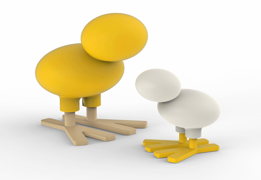 2015 legte Magis die Sitzskulptur Happy Bird aus Kunststoff wieder auf. Bei Markanto sind diese spielerischen Sitzgelegenheiten in den Farben Gelb, Weiß oder Orange erhältlich, die Beine des Vogels sind aus massiver Esche – was für die nötige Stabilität beim Spielen sorgt.