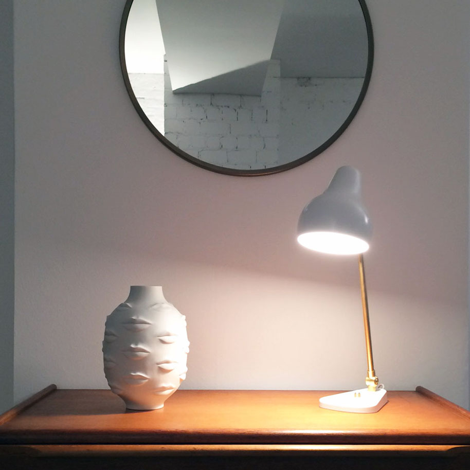 Gala Vase von Jonathan Adler mit der VL38 Radiohuset Tischleuchte von Vilhelm Lauritzen (Louis Poulsen). Das Vintage-Sideboard ist ein Eintwurf des niederländischen Architekten Cees Braakman aus den 1940er Jahren für Pastoe.