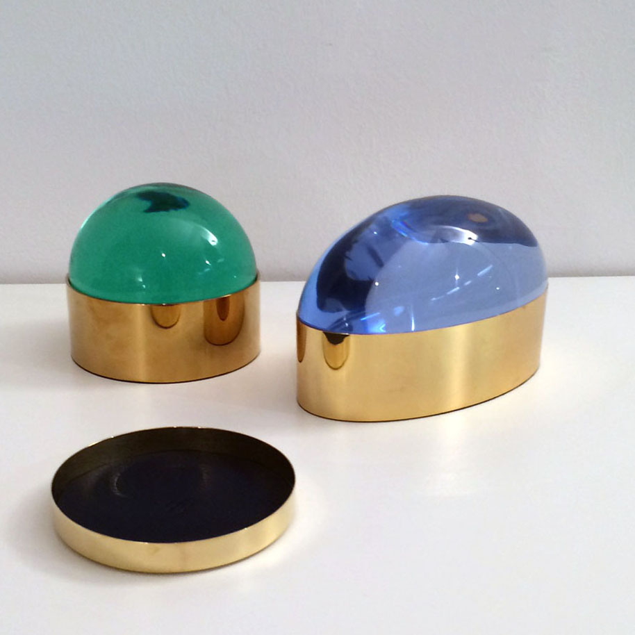 Globo Schmuckdosen von Jonathan Adler und Karui Messing-Tablett von GamFratesi (Skultuna)