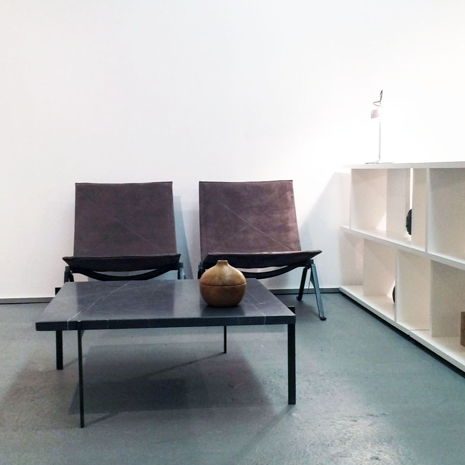 Anniversary Edition von Poul Kjaerholm (Fritz Hansen), das Arie-Regal ist von e15