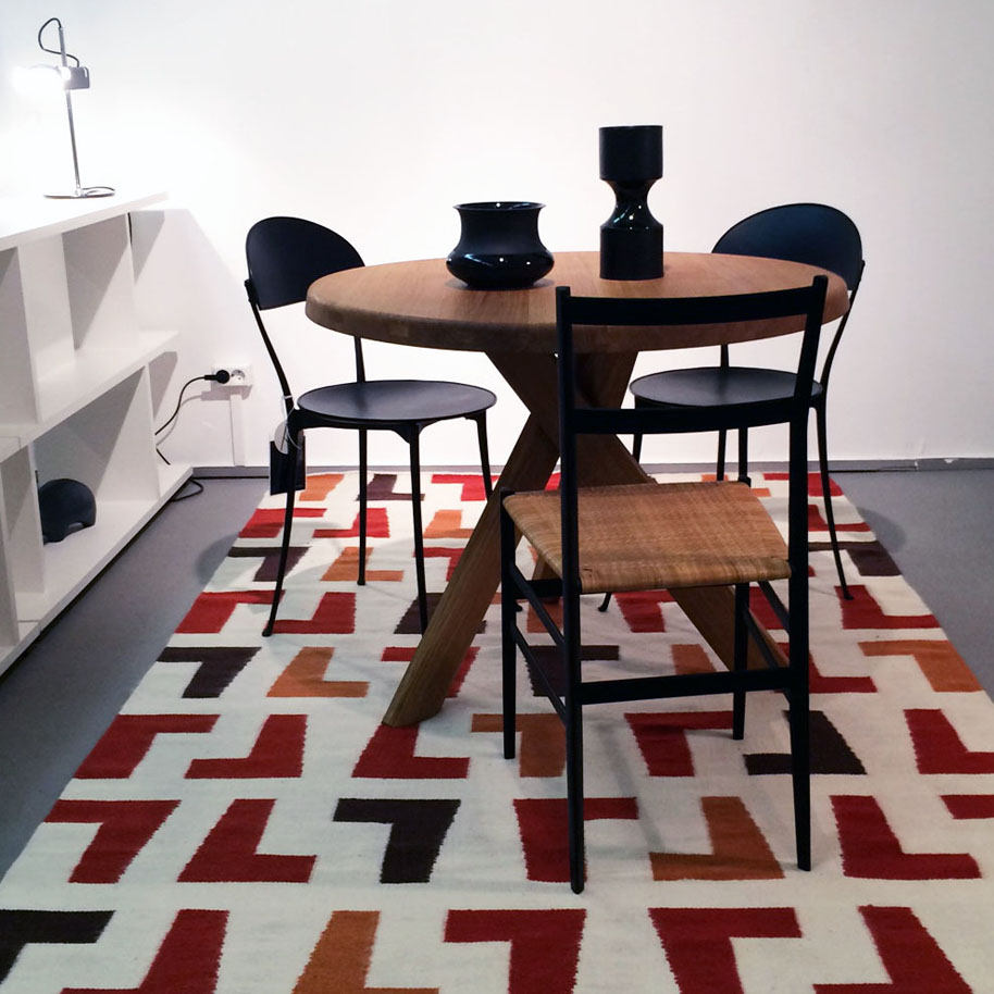 Pierre Chapo Tisch mit Superleggera Stuhl von Gio Ponti (Cassina) und Tonietta Chair von Enzo Mari (Zanotta)
