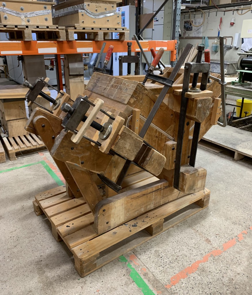 Zu den Passagen 2021 hatten wir zusammen mit Artek und Vitra eine umfangreiche Ausstellung über das Werk von Alvar Aalto geplant. Im Mittelpunkt stand dabei eine neue Markanto Edition, das Foto zeigt die Herstellung der Edition in der Artek Manufaktur in Turku. Dabei wird das Möbel 48 Stunden in den Holzrahmen eingespannt, um so die nötige Holzverbiegung zu erreichen. Aber was für ein Möbel kann das werden? Teilen Sie uns die richtige Antwort bis zum 15. Dezember 2020 mit und gewinnen Sie einen Artek Hocker 60 in der Walnut-Version (ohne Sitzpolsterung)! Bei mehreren richtigen Antworten entscheidend das Los, der Rechtsweg ist natürlich ausgeschlossen.