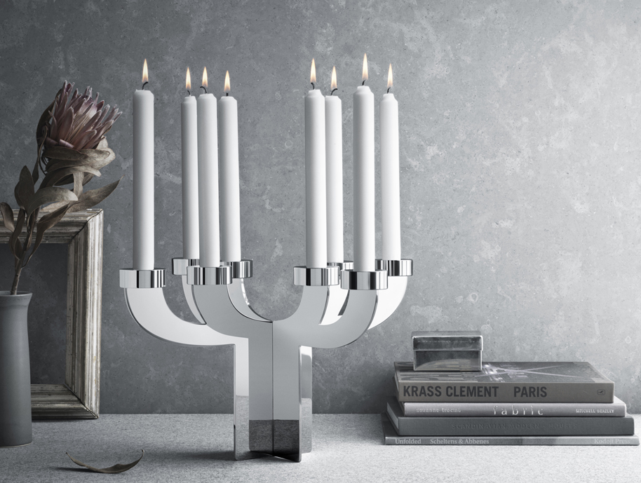 Neu von Georg Jensen ist auch der achtflammige Kandelaber von Grete Meyer. Gete Meyer wird vielen Leserinnen und Lesern eher unbekannt sein, dabei gilt sie als eine der bedeutendsten Kunsthandwerkerinnen Dänemarks.