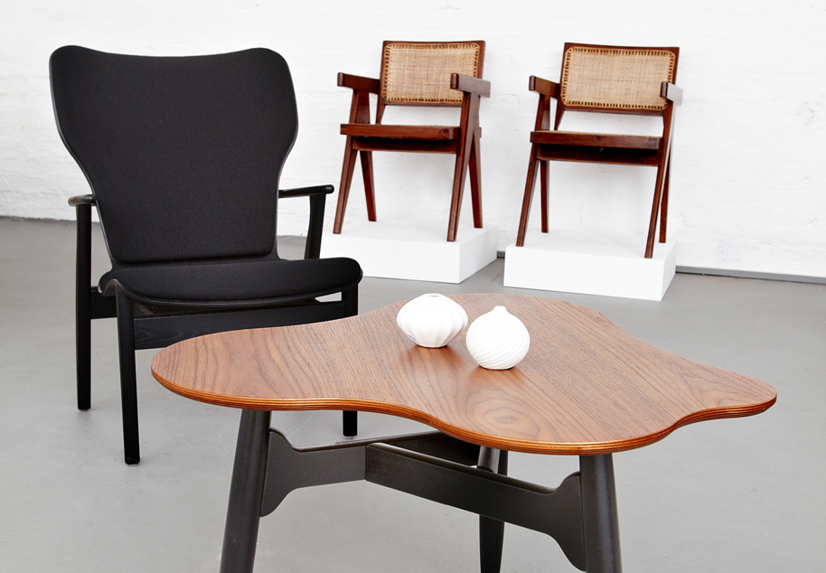 Das Foto aus unserem Markanto Depot zeigt übrigens den Tee-Tee Beistelltisch und den Domus Lounge Chair von Ilmari Tapiovaara, einem unserer erklärten Lieblingsentwerfer. Gerade hat Artek den Tapiovaara-Tisch wieder in die Preisliste aufgenommen. Die Keramiken sind von Jonathan Adler aus New York.