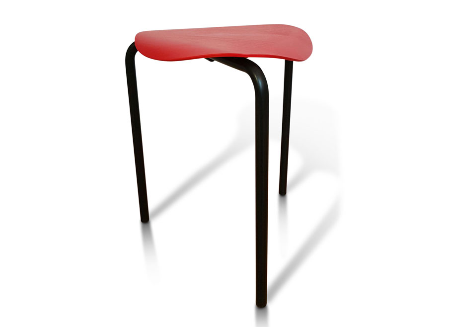 Der Lukki Hocker war damals wahlweise mit einem Formholzsitz oder einen Kunststoffsitz erhältlich. Selbst eine Variante mit Rückenlehne wurde damals produziert (quasi ein Stuhl-Hocker). Das Exemplar in unserer damaligen Ausstellung hatte eine rote Sitzfläche, wodurch sich schnell der Spitzname Fliegenpilz ableitete. Zusammen mit Artek haben wir nun diese Farbvariante aufgelegt und 25 Lukki Hocker herstellen lassen.