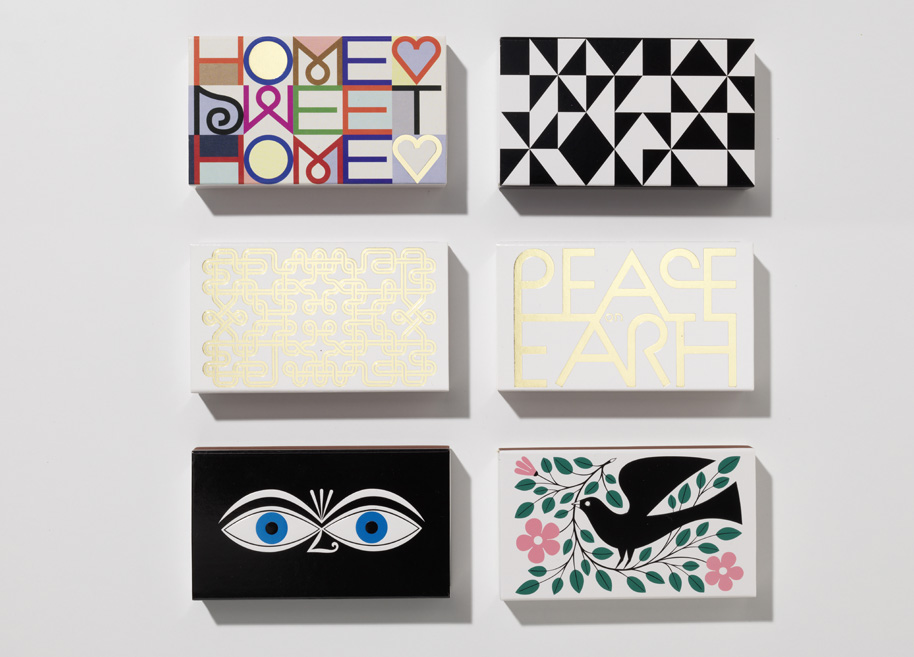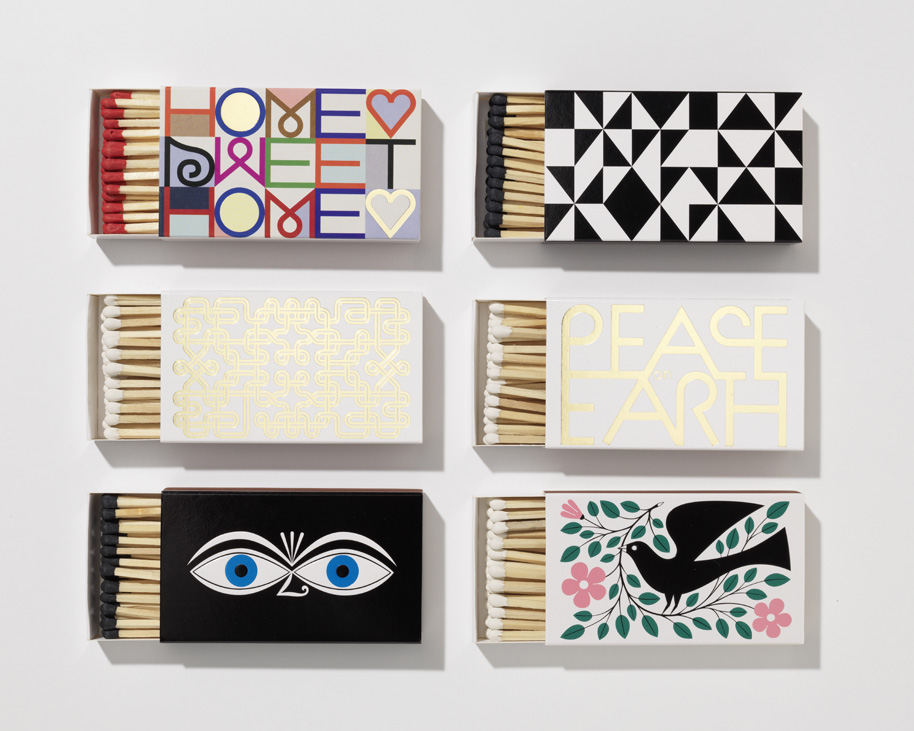 Erhältlich sind die Matchboxes bei Markanto als komplettes 6er Set für Sammler, bestehend aus den sechs unterschiedlichen Motiven: Dove, Eyes, Geometric A, Home Sweet Home, Knot und Peace on Earth. Unser Lieblingsmotiv der Streichholzverpackungen ist dabei Home Sweet Home mit seiner beeindruckenden Typografie (auch als Kissen von Vitra erhältlich).