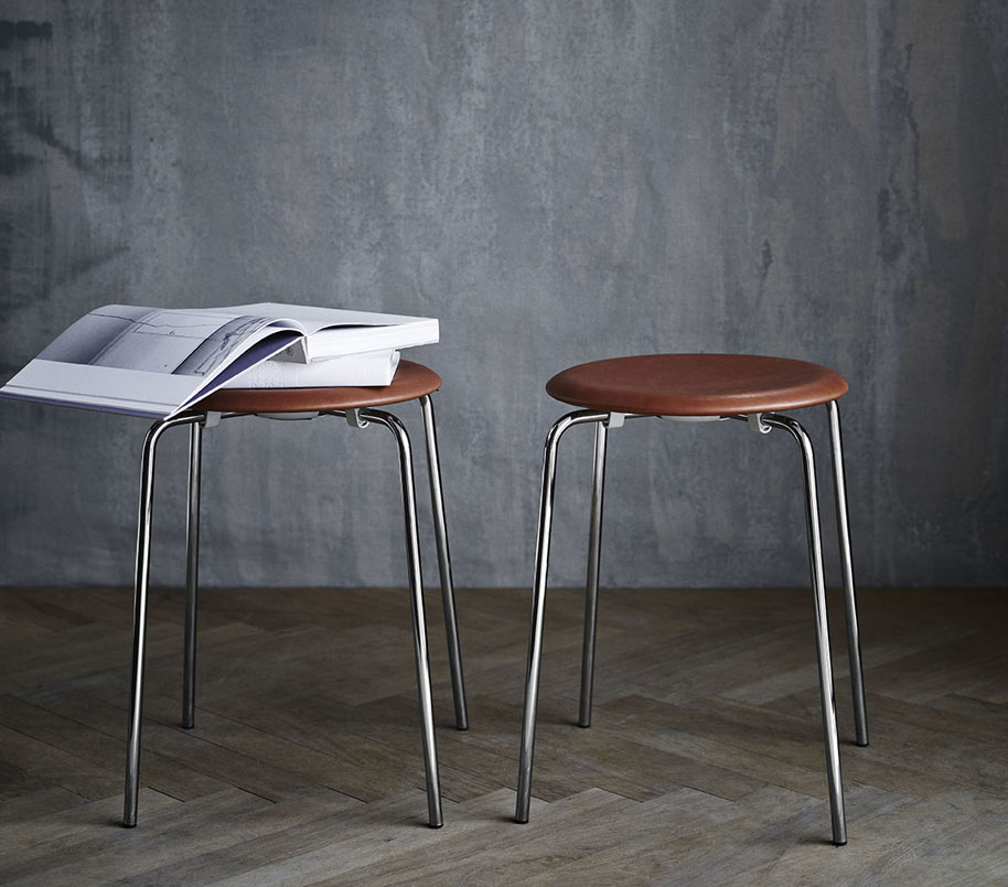 An dem Entwicklungsprozess des Dot Hocker wird beispielhaft deutlich, dass viele Designklassiker oftmals in einem gemeinschaftlichen Kommunikationsprozess zwischen Designer und Hersteller entstanden sind. Der Arne Jacobsen Hocker wurde ab 1970 in seiner jetzigen Form revitalisiert und bekam vier Beine. Natürlich ist er dadurch genauso gut stapelbar wie sein dreibeiniger Vorgänger.