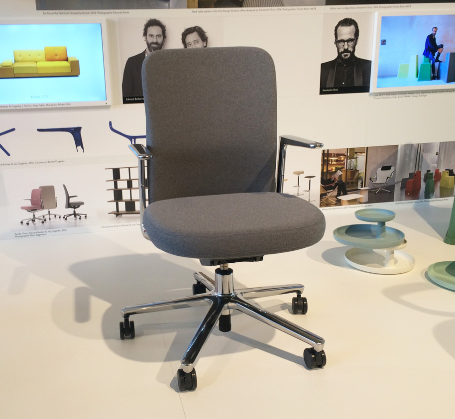 Die beiden Designer Edward Barber und Jay Osgerby haben an der Realisierung des Pacific Chairs über vier Jahre lang gearbeitet, wie uns Jay Osgerby gestern bei dem Vitra Workshop in Weil am Rhein erläuterte. Vorgestellt wurde der moderne Bürosttuhl dann erstmalig 2016 zur Orgatec in Köln.