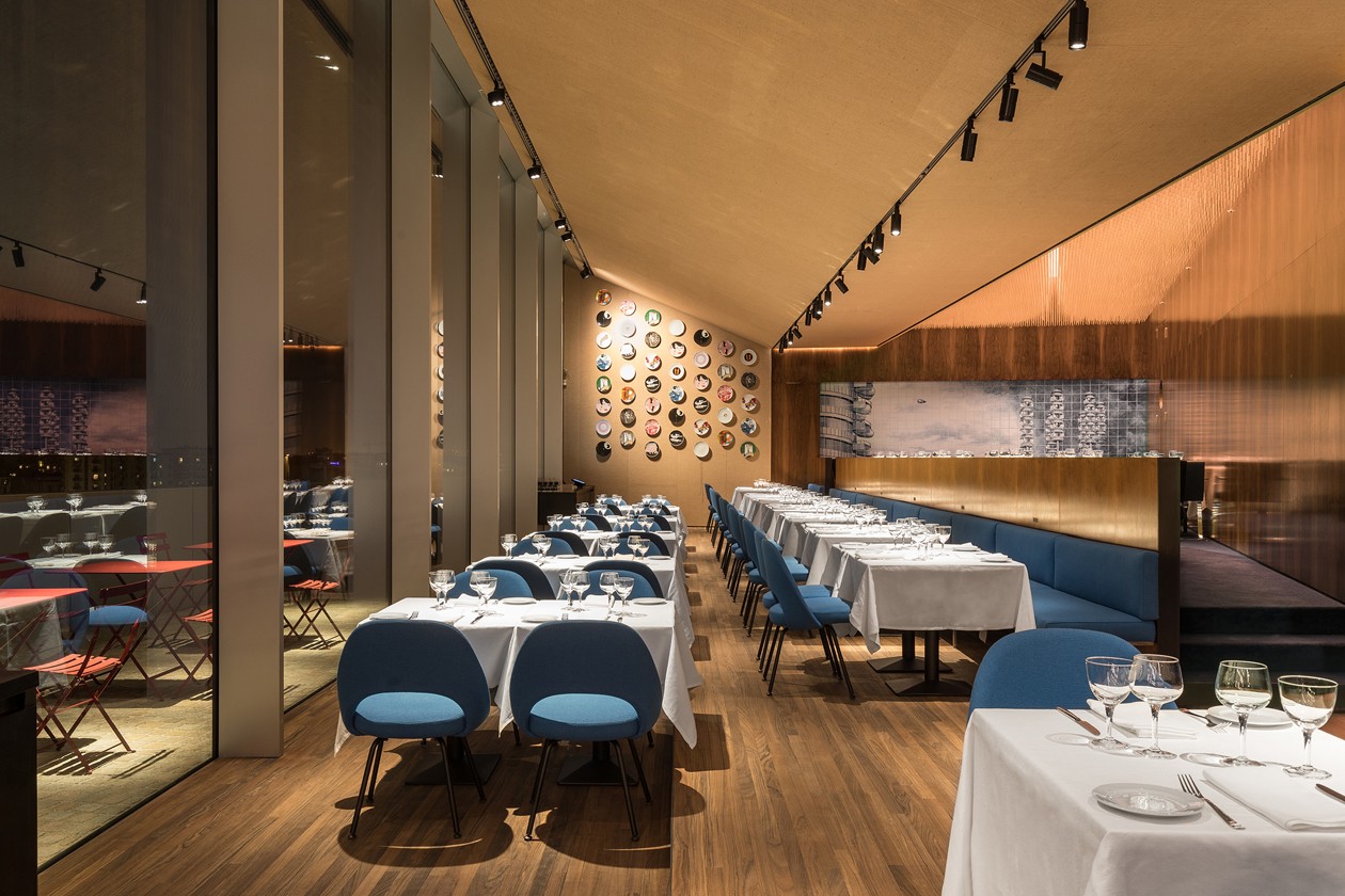 Das Restaurant Torre in der sechsten und siebten Etage des sechzig Meter hohen Turmes der Fondazione Prada ist „eine Collage aus bereits bestehenden Themen und Elementen, die Kunst und Design zusammenbringt“, so Rem Koolhaas von Studio OMA. In den zwei Ebenen des Restaurants hat der Architekt mit seinem Team weitere Knoll-Klassiker eingesetzt wie die Konferenzstühle von Eero Saarinen und die eleganten Brno Chairs von Mies van der Rohe. Zudem befinden sich im Barbereich verschiedene Arrangements von Saarinen Tischen aus der Knoll Pedestal Kollektion von Eero Saarinen.