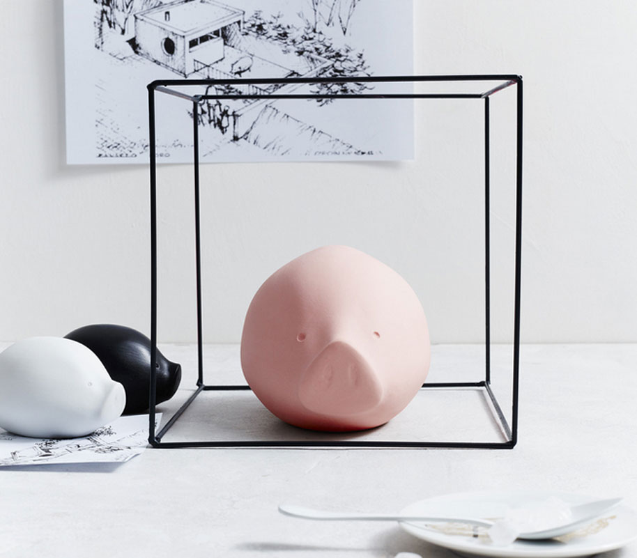 2016 entwarf Sebastian Herkner für Rosenthal das süße Sparschein Roro. Der Name ist dabei eine Hommage an Philip Rosenthal (und an sein Hausschwein Roro).