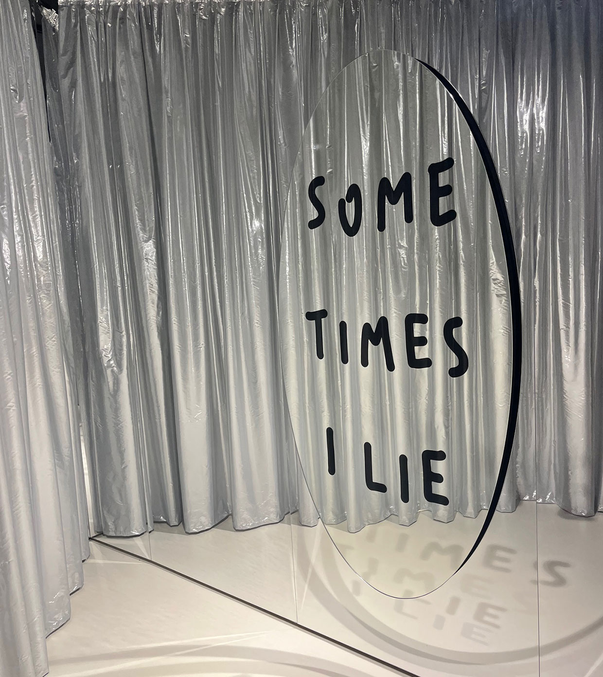 Zur Möbelmesse 2025 in Mailand präsentierte Cassina eine vielbeachtete Kooperation mit dem italienischen Künstlers Pietro Terzini, der mit seinem Crossover aus Kunst, Design und Mode aktuell sehr viel Beachtung erzielt. Alleine bei Instagram hat sein Profil über 650.000 Follower. Aus der Kooperation entstanden drei Spiegel mit seinen typischen plakativen Aussagen, wobei das Motiv „We see what we want to see” als Serienprodukt erscheint. Die beiden anderen Spiegel „I love you” und „Sometimes I lie” sind in nur ganz kleinen Editionen von 100 Exemplaren erhältlich, die schon während der Messe ausverkauft waren. Markanto ist es gelungen sich je einen der Editions-Spiegel zu sichern. Die ovale Form stammt des Spiegels ist übrigens von dem berühmten Spiegel „Les grands trans-Parents” von May Ray abgeleitet.