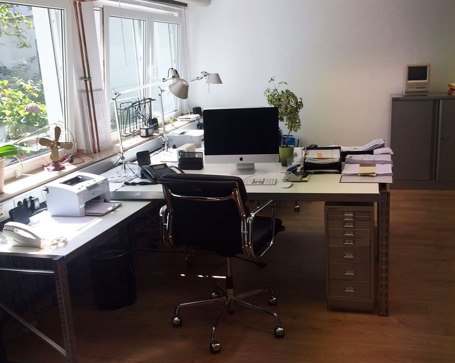 …und unser aktueller Besprechungsraum (der neue Noguchi-Besprechnungstisch von Vitra für unseren Konferenzbereich kommt Ende der Woche)